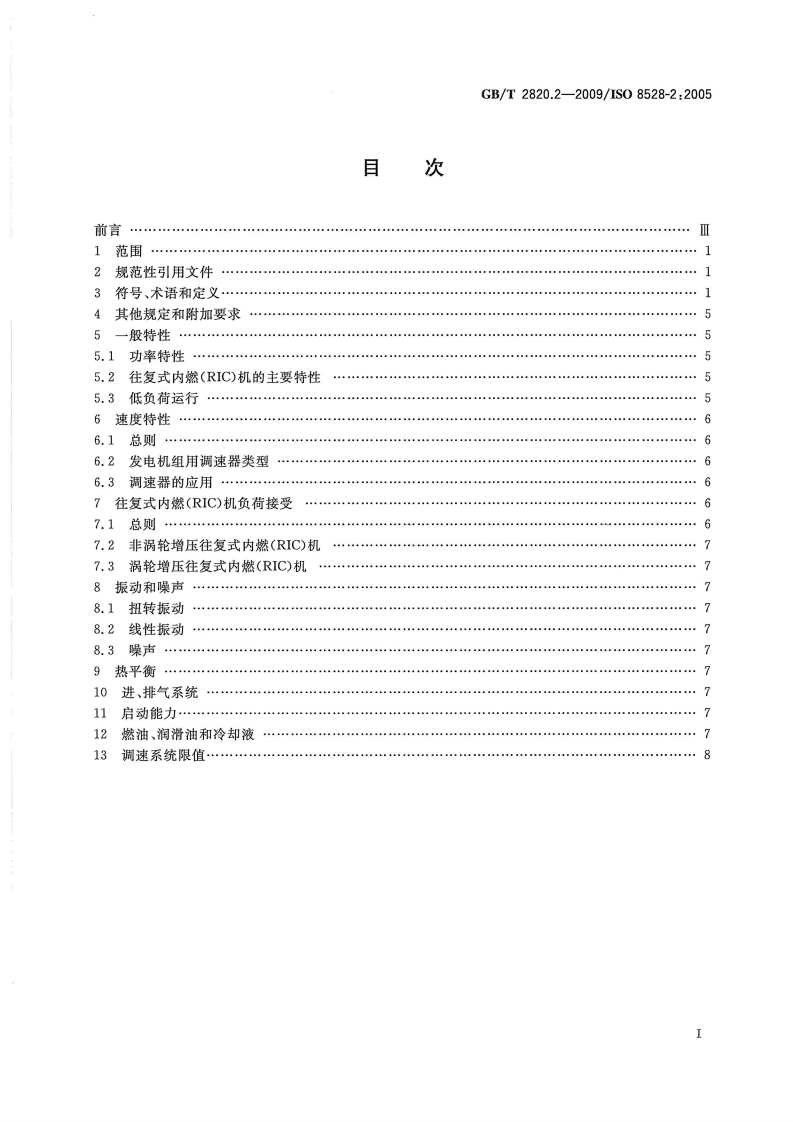 1CS29.160.40K52中华人民共和国国家标准GB/T2820.2-2009/1S08528-2:2005代替GB/T2820.2一1997往复式内燃机驱动的交流发电机组第2部分:发动机Reciprocating internal combustion engine driven alternatingcurrent generating sets-Part 2:Engines(IS08528-2:2005,IDT)2009-05-06发布2009-11-01实施中华人民共和国国家质量监督检验检疫总局中国国家标准化管理委员会发布数码防伪