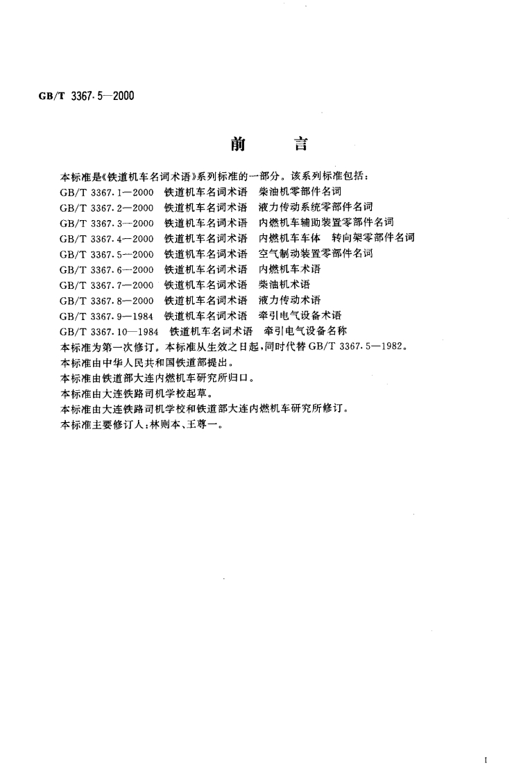 GBT3367.5-2000铁道机车名词术语空气制动装置零部件名词348072@abc4个月前发布关注私信0.26MB9页027GBT3367.5-2000铁道机车名词术语空气制动装置零部件名词此内容为付费资源,请付费后查看¥11¥16黄金会员免费钻石会员免费立即购买您当前未登录!建议登陆后购买,可保存购买订单付费资源 第1页 / 共9页 第2页 / 共9页 试读已结束,还剩7页,您可下载完整版后进行离线阅读 THE END标准规范 文本预览 1Cs01.040.45S 40中华人民共和国国家标准GB/T3367.5-2000铁道机车名词术语空气制动装置零部件名词Glossary of terms for railway locomotiveNames of component parts for air brake equipment2000-10-25发布2001-08-01实施国家质量枝术监督局发布 查看更多 收起部分 喜欢就支持一下吧收藏