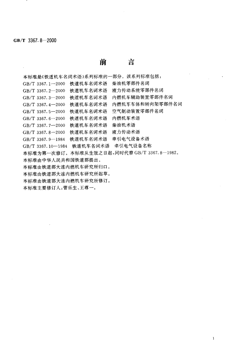 GBT3367.8-2000铁道机车名词术语液力传动术语348072@abc4个月前发布关注私信0.29MB9页024GBT3367.8-2000铁道机车名词术语液力传动术语此内容为付费资源,请付费后查看¥11¥16黄金会员免费钻石会员免费立即购买您当前未登录!建议登陆后购买,可保存购买订单付费资源 第1页 / 共9页 第2页 / 共9页 试读已结束,还剩7页,您可下载完整版后进行离线阅读 THE END标准规范 文本预览 1Cs01.040.45S40中华人民共和国国家标准GB/T3367.8-2000铁道机车名词术语液力传动术语Glossary of terms for railway locomotiveTerms of hydraulic transmission2000-10-25发布2001-08-01实施国家质量技术监督局发布 查看更多 收起部分 喜欢就支持一下吧收藏