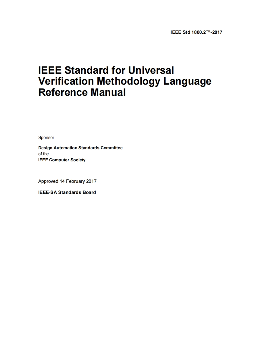IEEE STANDARDS ASSOCIATION令IEEEIEEE Standard for UniversalVerification Methodology LanguageReference ManualIEEE Computer SocietySponsored by theDesign Automation Standards CommitteeIEEE3 Park AvenueIEEE Std 1800.2TM-2017New York,NY 10016-5997USA
