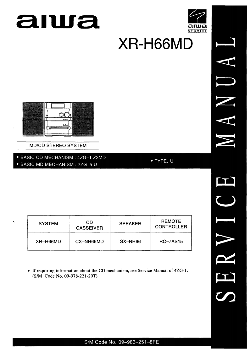 aaaiwaSERVICEXR-H66MDTYANYNMD/CD STEREO SYSTEMBASIC CD MECHANISM 4ZG-1 Z3MD·TYPE:UBASIC MD MECHANISM:7ZG-5 USYSTEMCDSPEAKERREMOTECASSEIVERCONTROLLERXR-H66MDCX-NH66MDSX-NH66RC-7AS15If requiring information about the CD mechanism,see Service Manual of 4ZG-1.(S/M Code No.09-978-221-20T)HolAdasS/M Code No.09-983-251-8FE