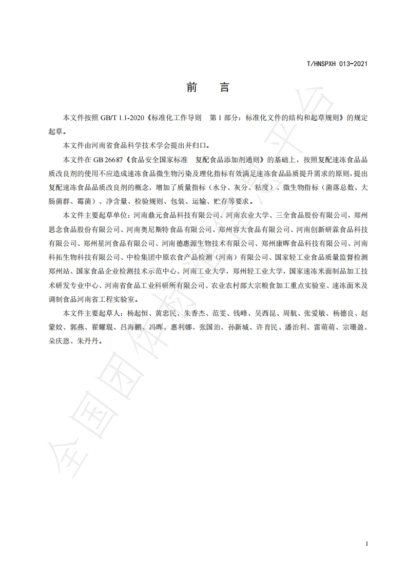 T_HNSPXH013-2021复配速冻食品品质改良剂348072@abc5个月前发布关注私信0.30MB9页038T_HNSPXH013-2021复配速冻食品品质改良剂此内容为付费资源,请付费后查看¥17¥22黄金会员免费钻石会员免费立即购买您当前未登录!建议登陆后购买,可保存购买订单付费资源 第1页 / 共9页 第2页 / 共9页 试读已结束,还剩7页,您可下载完整版后进行离线阅读 THE END标准规范 文本预览 THNSPXH河南省食品科学技术学会团体标准T/HNSPXH 013-2021复配速冻食品品质改良剂Compound frozen food quality improver国团体标2022-09-13发布2022-09-27实施河南省食品科学技术学会发布 查看更多 收起部分 喜欢就支持一下吧收藏