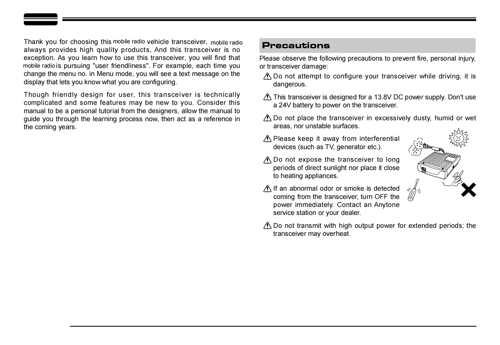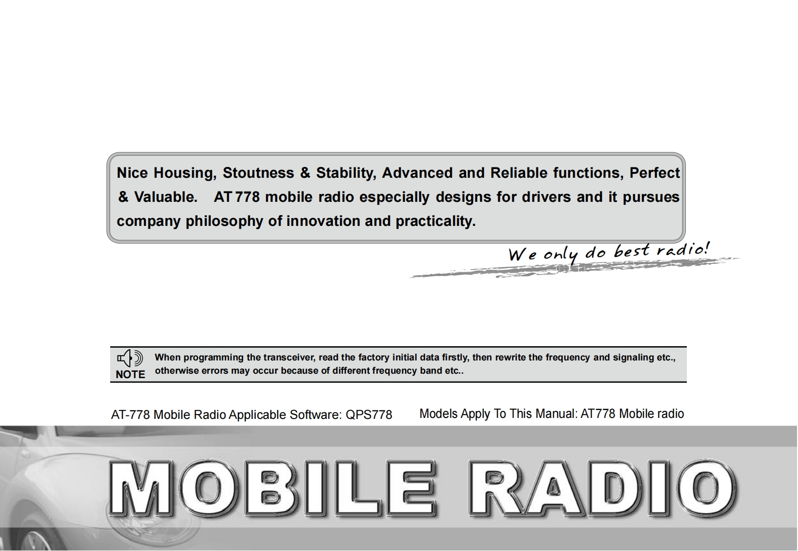 Anytone_AT-778UV_使用说明书手册找手册网4天前发布关注私信5.05MB43页020Anytone_AT-778UV_使用说明书手册此内容为付费资源,请付费后查看¥19¥23黄金会员免费钻石会员免费立即购买您当前未登录!建议登陆后购买,可保存购买订单付费资源 第1页 / 共43页 第2页 / 共43页 第3页 / 共43页 第4页 / 共43页 第5页 / 共43页 试读已结束,还剩38页,您可下载完整版后进行离线阅读 THE END自由通/灵通 文本预览 LO A TSQ -on 13.V0L:35BSUY:135Z930MHzSC/SKPV/MVOLVOL-DCTAT778FCC ID:T4KAT778UVAPOLLO ICB RadioUSER'S MANUALMOBILE RADIO 查看更多 收起部分 喜欢就支持一下吧收藏