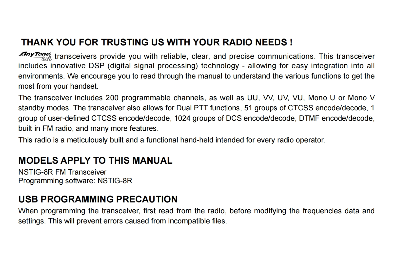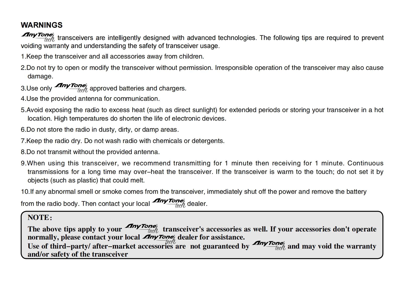 A1.150120Package and Product Designed in U.S.A.MADE IN CHINAAnyToneTech.comCopyright 2015 by AnyTone TechAny TorcAll rights reserved.No part of this publication may be reproduced,distributed,ortransmitted in any form or by any means without the permission of AnyTone Tech
