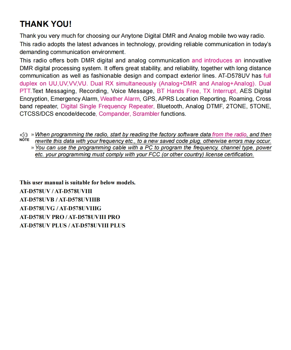 D578UV-User-使用说明书手册找手册网4天前更新关注私信1.41MB41页036D578UV-User-使用说明书手册此内容为付费资源,请付费后查看¥19¥23黄金会员免费钻石会员免费立即购买您当前未登录!建议登陆后购买,可保存购买订单付费资源 第1页 / 共41页 第2页 / 共41页 第3页 / 共41页 第4页 / 共41页 第5页 / 共41页 试读已结束,还剩36页,您可下载完整版后进行离线阅读 THE END自由通/灵通 文本预览 nyToneQixiang Electron Science Technology Co.,Ltd.www.anytone.netA1.190929 查看更多 收起部分 喜欢就支持一下吧收藏
