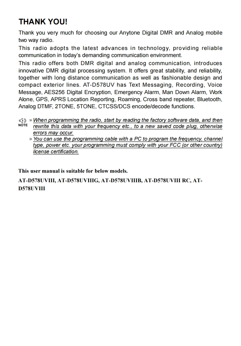 D578UVIII-PLUS-操作说明书手册找手册网4天前更新关注私信1.41MB38页039D578UVIII-PLUS-操作说明书手册此内容为付费资源,请付费后查看¥19¥23黄金会员免费钻石会员免费立即购买您当前未登录!建议登陆后购买,可保存购买订单付费资源 第1页 / 共38页 第2页 / 共38页 第3页 / 共38页 第4页 / 共38页 第5页 / 共38页 试读已结束,还剩33页,您可下载完整版后进行离线阅读 THE END自由通/灵通 文本预览 Kiny ToneQixiang Electron Science Technology Co.,Ltd.www.anytone.netAT-D578UVIII PLUSA1.190731 查看更多 收起部分 喜欢就支持一下吧收藏