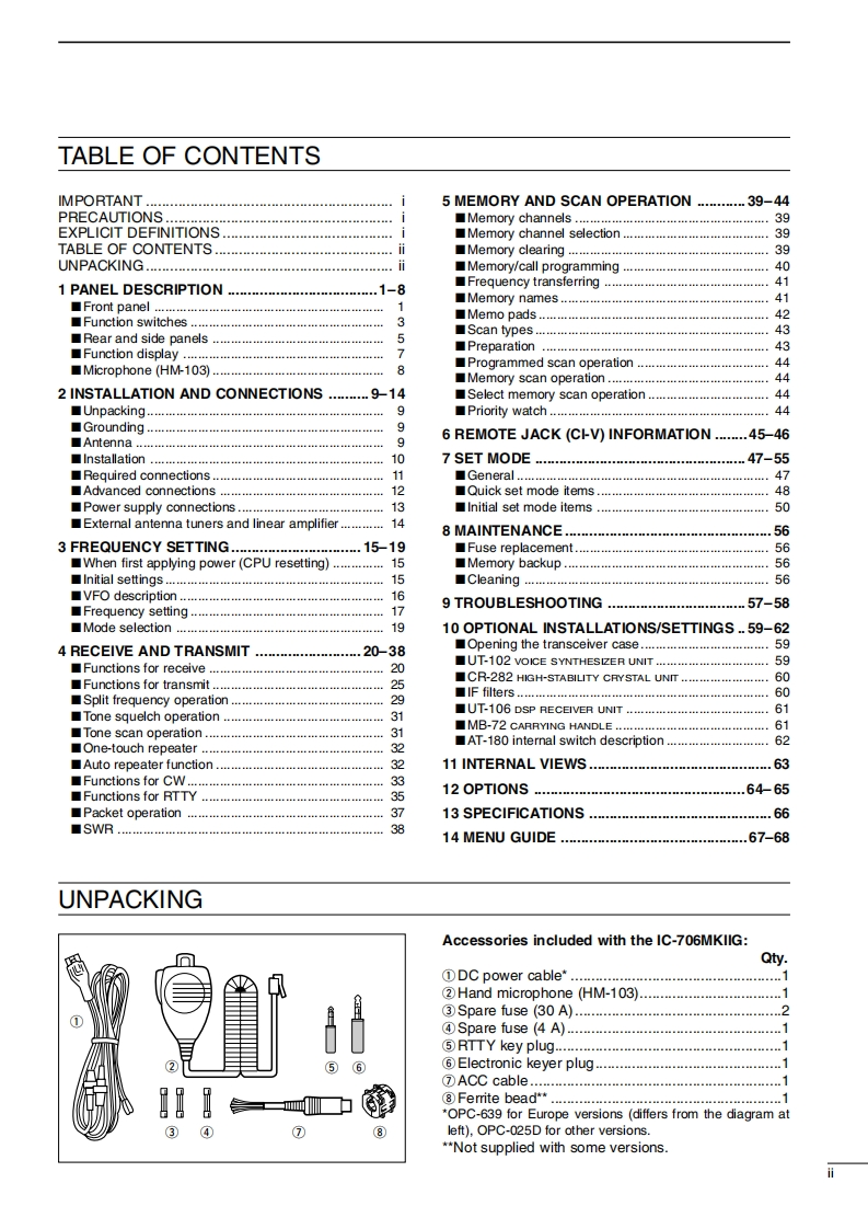 icOMINSTRUCTION MANUALHF/VHF/UHF ALL MODE TRANSCEIVERIC-7O6MKⅡGThis device complies with Part 15 of the FCC rules.Opera fion is sub-ject o the following two condfons:(1)This device may not causeharmful inte fereno地,andP)his device mu时acoept any interferencereceived,including inte dference that may cause undesired operafion.Downloaded by▣Amateur Radio Directorywww.hamdirectory.infoIcom Inc.