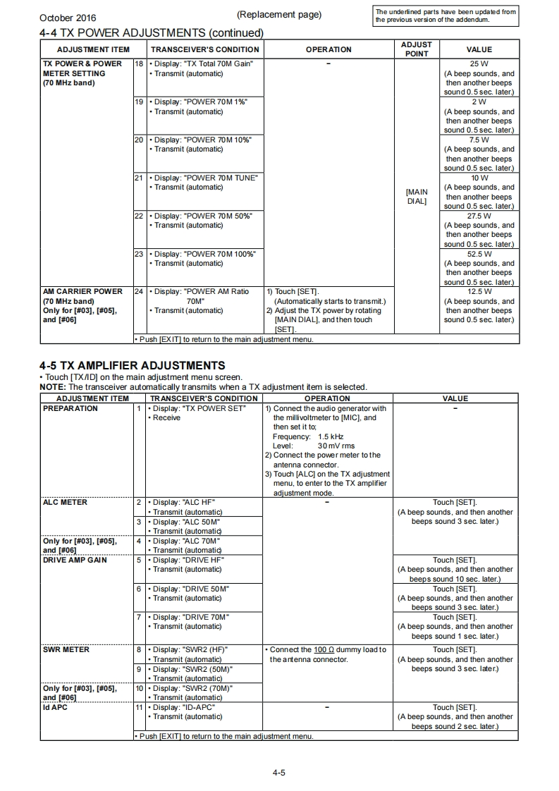 October 2016COMSERVICE MANUALADDENDUM1C-7300NOTE:Use these amended pages as one addendum set.Do not mix them up with the previous master pages.CONTENTSREPLACEMENT PAGES:ADJUSTMENT PROCEDURES...........4-5AMENDED PAGES:PARTS LIST...........BOARD LAYOUTS21BLOCK DIAGRAMSSCHEMATIC DIAGRAMS32
