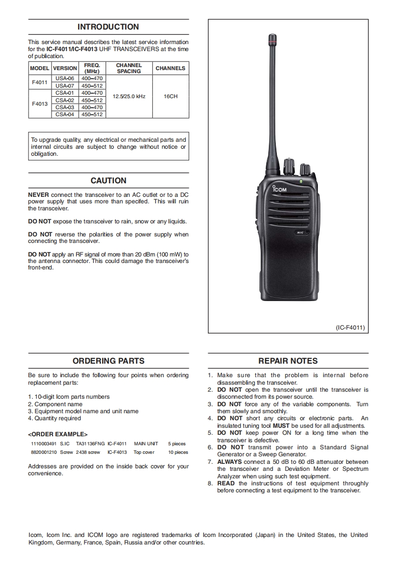 手册编号113:Icom_IC-F4011_IC-F4013_维修说明书手册_2009找手册网33天前发布关注私信2.04MB32页027手册编号113:Icom_IC-F4011_IC-F4013_维修说明书手册_2009此内容为付费资源,请付费后查看¥19¥23黄金会员免费钻石会员免费登录购买付费资源 第1页 / 共32页 第2页 / 共32页 第3页 / 共32页 第4页 / 共32页 第5页 / 共32页 试读已结束,还剩27页,您可下载完整版后进行离线阅读 THE END艾可慕 文本预览 icoMSERVICEMANUALUHF TRANSCEIVERSIE-F4813S-14605XZ-C1May.2009Icom Inc. 查看更多 收起部分 喜欢就支持一下吧收藏