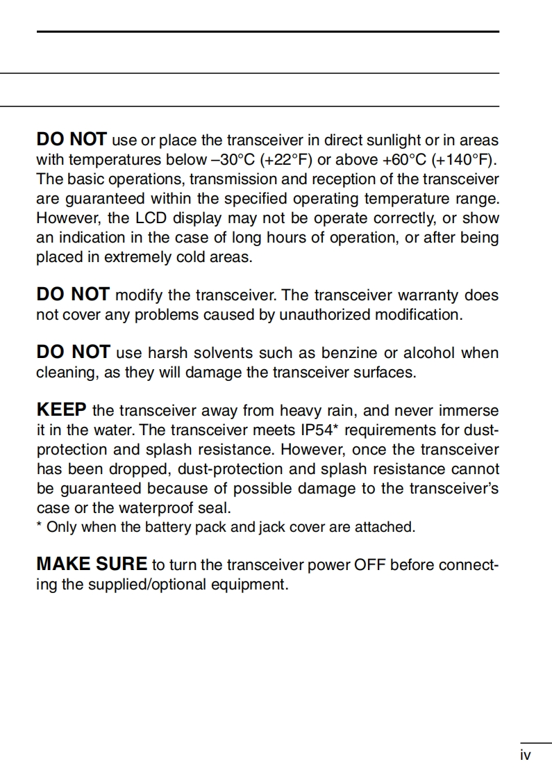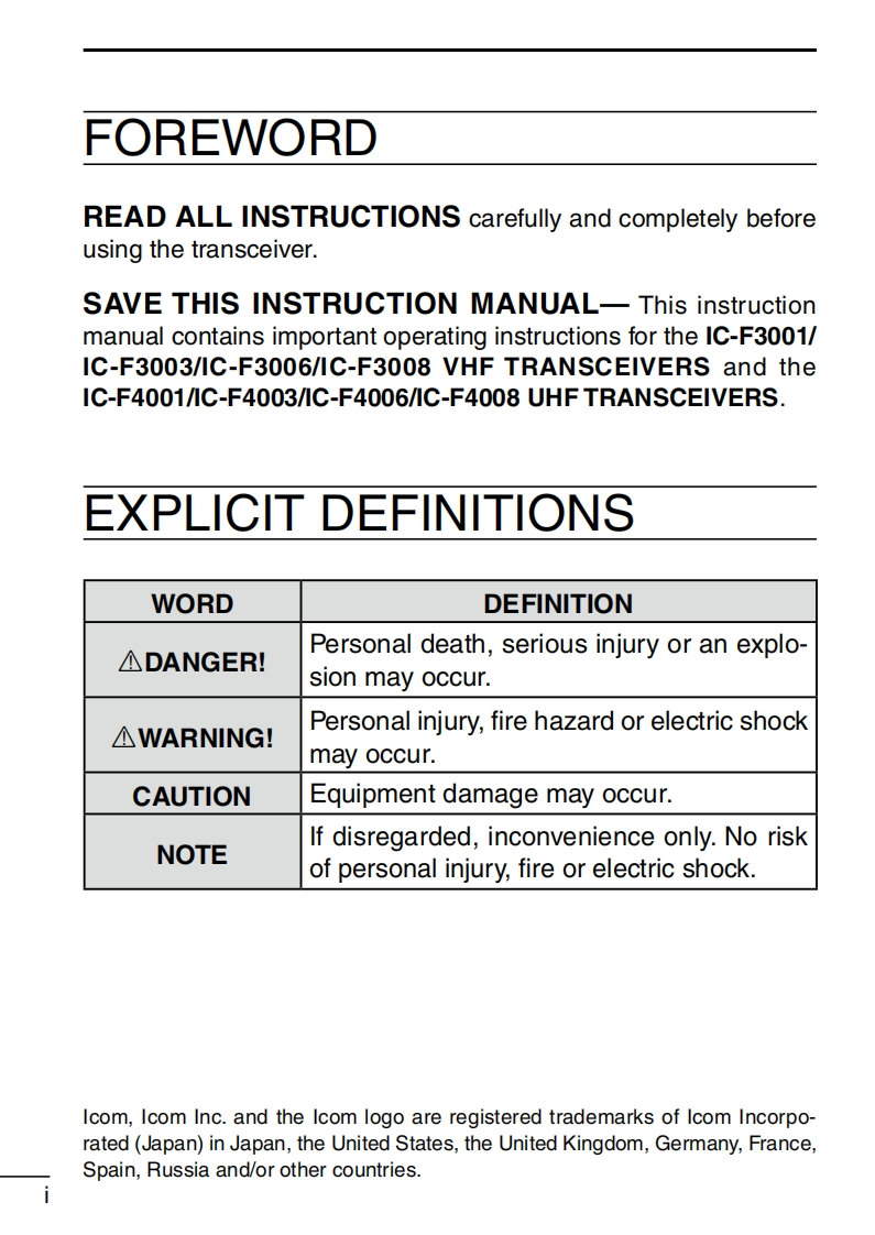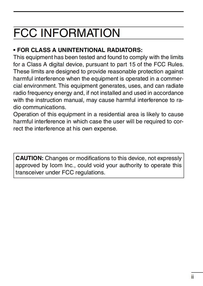 COMMDC 1200CompatibleLimited functions onlyINSTRUCTION MANUALVHF TRANSCEIVERSIC-F3000SeriesUHF TRANSCEIVERSIc-F4000SeriesTCOMThis device complies with Part 15 of the FCCRules.Operation is subject to the condition thatthis device does not cause harmful interference.Icom Inc.The photo showsthe VHF transceiver.