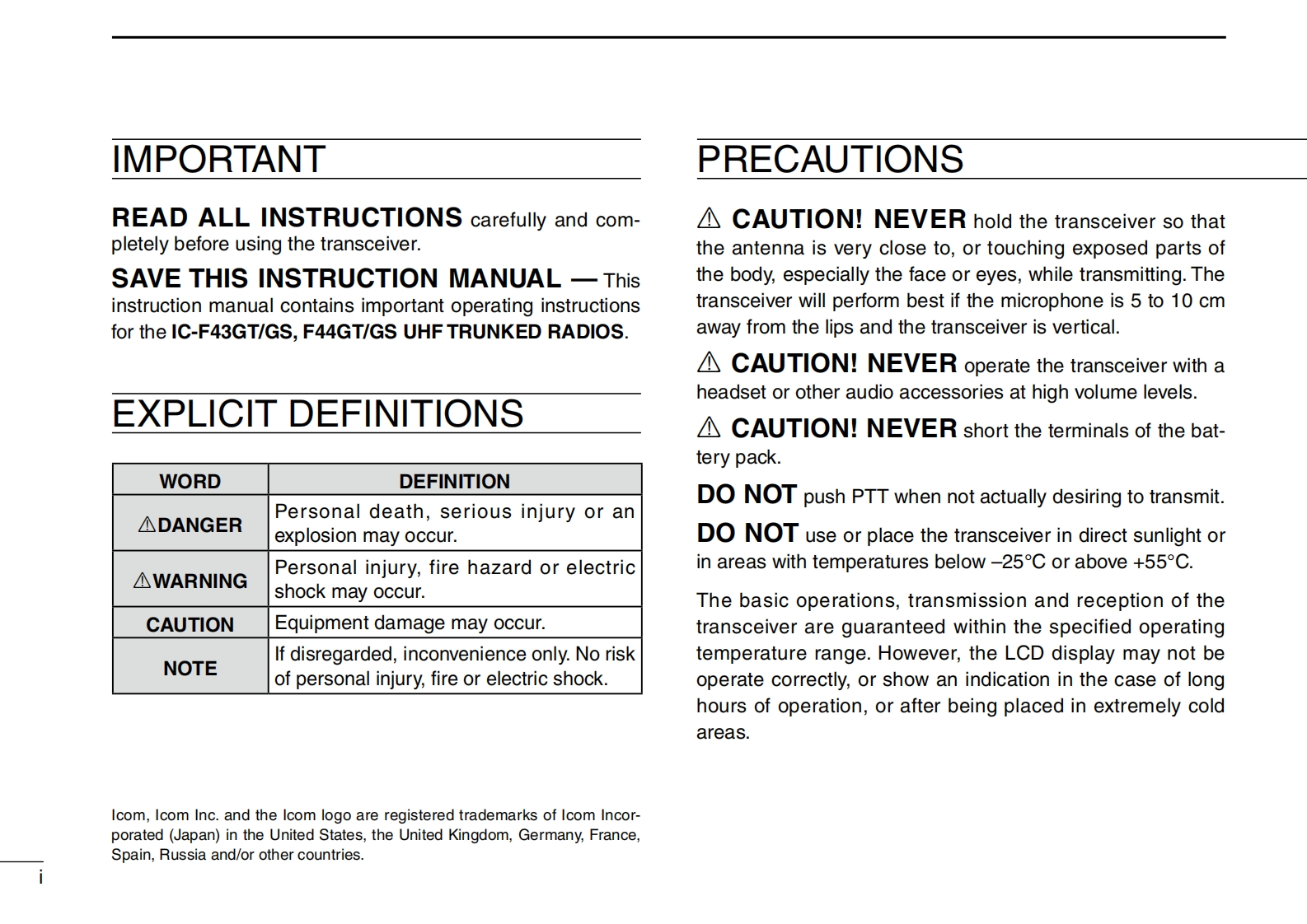 手册编号182:Icom_IC-F43GT_IC-F43GS_IC-F44GT_IC-F44GS_使用说明书手册找手册网33天前发布关注私信0.71MB48页038手册编号182:Icom_IC-F43GT_IC-F43GS_IC-F44GT_IC-F44GS_使用说明书手册此内容为付费资源,请付费后查看¥19¥23黄金会员免费钻石会员免费登录购买付费资源 第1页 / 共48页 第2页 / 共48页 第3页 / 共48页 第4页 / 共48页 第5页 / 共48页 试读已结束,还剩43页,您可下载完整版后进行离线阅读 THE END艾可慕 文本预览 COMMPT Trunking6MPT1327/1343INSTRUCTION MANUALUHF TRUNKED RADIOSIC-F43GT/GSI己-F44GT/GSIcom Inc.P1 P20#Icom Inc. 查看更多 收起部分 喜欢就支持一下吧收藏