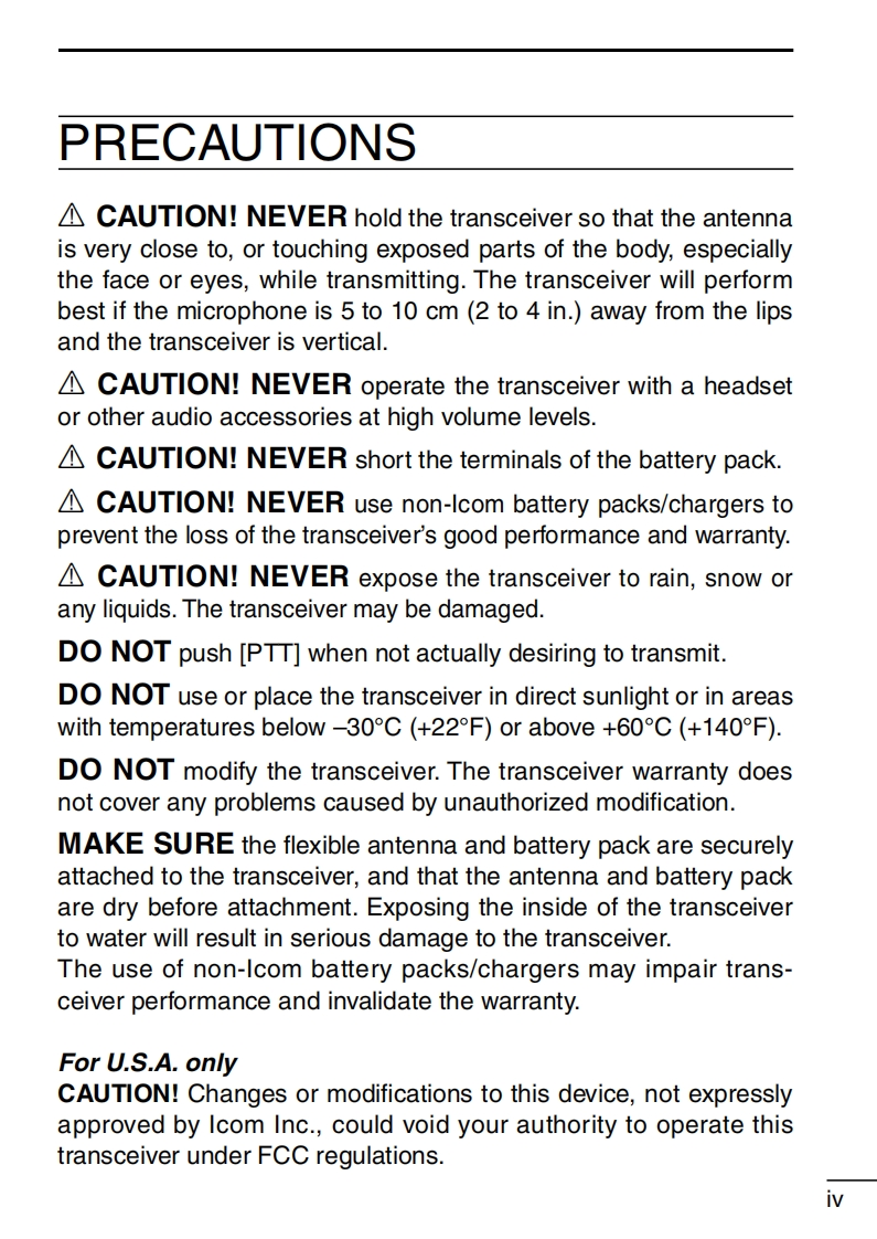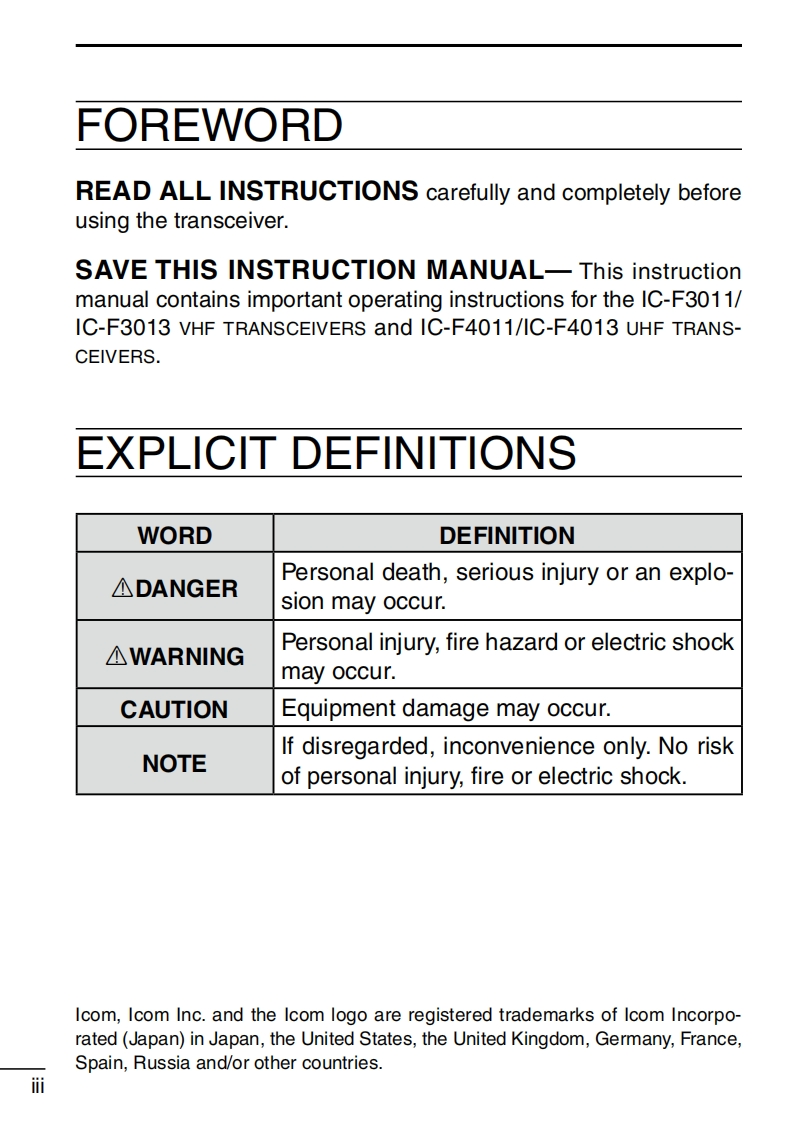 COMINSTRUCTION MANUALVHF TRANSCEIVERSIE-F3813UHF TRANSCEIVERSIC-F40111c-F4013COMThis device complies with Part 15 of the FCCRules.Operation is subject to the conditionthat this device does not cause harmful inter-ference.MICIcom Inc.