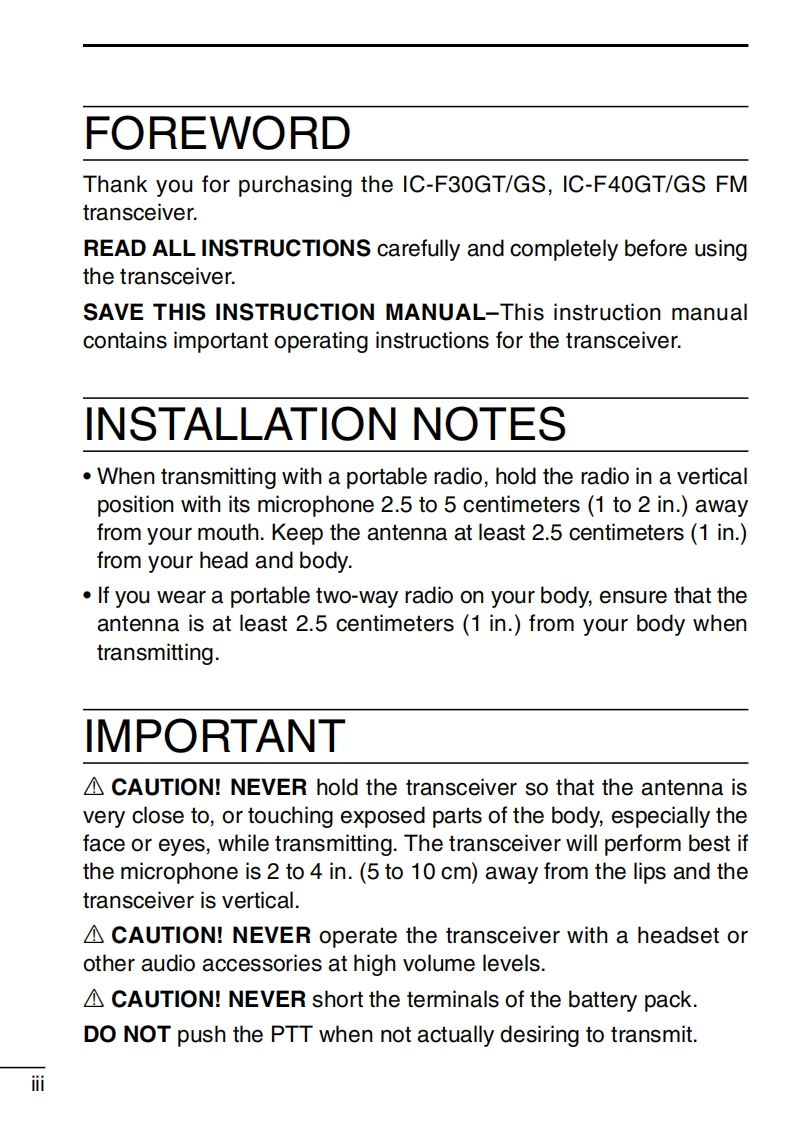COMSmarTrunk ITCompatibleINSTRUCTION MANUALVHF TRANSCEIVERIC-F30GT/GSUHF TRANSCEIVERIC-F4OGT/GSCOMThis device complies with Part 15 of the FCC rules.Oper-ation is subject to the following two conditions:(1)This de-vice may not cause harmful interference,and (2)thisdevice must except any interference received,including in-terference that may cause undesired operation.ch256comIC-F30GTPo】P1 P2P31234567890Icom Inc.