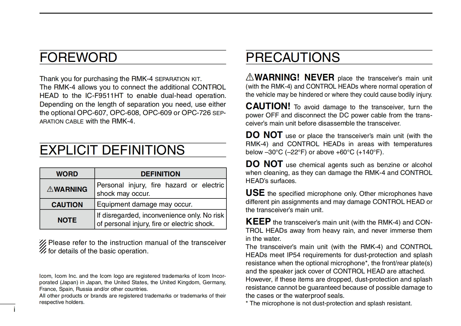 手册编号203:Icom_IC-F9511_IC-F9521_RMK-4_使用说明书手册找手册网33天前发布关注私信0.42MB16页040手册编号203:Icom_IC-F9511_IC-F9521_RMK-4_使用说明书手册此内容为付费资源,请付费后查看¥19¥23黄金会员免费钻石会员免费登录购买付费资源 第1页 / 共16页 第2页 / 共16页 第3页 / 共16页 第4页 / 共16页 第5页 / 共16页 试读已结束,还剩11页,您可下载完整版后进行离线阅读 THE END艾可慕 文本预览 COMINSTRUCTION MANUALSEPARATION KITRMK-4Icom Inc. 查看更多 收起部分 喜欢就支持一下吧收藏