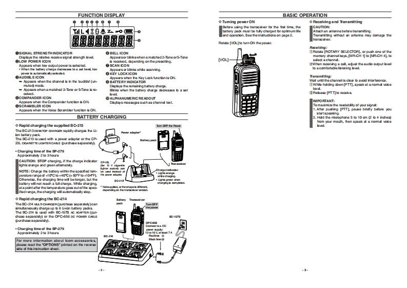 OPTIONSBATTERY PACKS+FA-S001U/FA-SC02U LHF ANTENPAICOMBP-278/BP279/BP-280 DATTERY PAOF4.SC1U上350400M收INSTRUCTIONSF4-3C02330-380MH2VHF TRANSCEIVERSBate ry pa域论好C年cyBamery lfe'+FA-SOs1 UC UHF CUT ANTE网FASC81UC:380-820 MHzIC-F1000seriestt的0mhThank you for purchasing the IC-F100O serias vir8-2737.2uOTHERSUHF TRANSCEIVERS11a0 mah+MB-130NOOLE DRACKETMonts the BC213 SKTOP CHRGERona vaddty ofIC-F2000seresREAD ALL INSTRUCTIONS carduly and com1815 mah14 hounoletaly before using the transcdiver.8-2为72Y+MB-133BET CLP1570 mAh.HM-158LA/HM-159LA/HM-168LWP0pea)5元■RMCR0具0CComtination spoaker-micophone thatprovides con.(mnmuveniant operation whie the transcdiver is hanging onSUPPLIED ACCESSORIES8R-2807.2Wyour bdt.08amery pack"(picl).Aduit the micr中hana gan before轴.+HM-153LA/HM-166LA EARPIONEICROPHONE08aya9r3C凶3到ldoal for hands-fhoe operation.Cip the HM-3LA o0Bat dp B-133)山ng时国a女n如wb血god扑HM4168A(wthirtegratd PTT SMTCH to your lpdOPower adaptr'for the bame的y charg间TX::物dy=5:5:90or broastpodiatORable antrnt'CHARGERS+HS-04/HS-05/HS-97 HCADSET+BC-213 DESTOP CHARGER 4 BC-t238 AC ADAPTERVS-4LAPTT SWITOI CAOLE“Nega年efa4 or the shape0 is dmara成由cending onTo mapid charge asngk bamery padkNOPC-2004LA ADAPTER CAOLEthe transcdver version.+BC-214 NULI OWRGER+BC-1578 AC AOAPTERH3.9tEarhook typeTo rapidcharge up to 6 bamery packsH399Neck-am typeH7DC CABLES34A:To comect toheadsersCP23LCIGARETTEUGHTER CAOLEUs0whn中arging the bamery pack from a2Vc今ationarste lightar sodat翰Nith the BC2t约.Adust the both micraphane and VOgan before us+OPC-6务DO POWERCADLE+HS94UWHB-5 LWP HEA匹ETPANEL DESCRIPTIONUse with a t3.8V power sourceinstoad df the powerHS-94LWP:Earhook typeHS.93LWP:Nedk-am typeThare ane thege types df transcsivers in the C.P1000adagtae (Uae with the BC-214).Aduit the bath micra中ana and VOgan before u:银and IC-F2000 sares.ANTENNASFA-9C25WFA-8C55V/FA-8C82V/FA-8063Vc-F1C00F2000Non-dsplay type (Basic type)[vougC-F10008/F20008:(4-key typs)FA-9C252136-50_度m几Lc0+4k0yP0-P3]FA-9C55N50-74MwIC-F1000T/F2000T:10-key typeFA-9CE2N50-102LGD+4kys+0eyPa间FA-9CE3V55-E5M也FA-SC2EVS/FA-SC27V8/FA-SC58VS/FA-8C57VS[PTT]About the LED Indiator+山s rad whik transmiting.FA-9C28V8136-44MH2IPTMcra phanLights groon whie recdiving a signal,or when theFA-9C27V3:12-10Mwsqlchis opanFA-SC56SS0-E2MH位CDYFA-9s7V3:10-74Hndt raipansbl色the deitrudtion女rnag的o an bom5-Tone is racaivod,dapandng an the prasating+FA-SC61VC VIF CUT ANTENNAtrinacver in he evert he bom transover is usad wihFA-SC61VC:136-174MHzslowly blinks graen+FA-SC25U/FA-SC57U/FA-8C72U/FA-SC73UBYou mu速change the ba ry when the ndicab10-EY PADPeg9ena线FA-9C25400-430H拉FA-SC57U:430-470MHAbout the Speaker microphone jackFA-9C72470-520MFA-3C73U8:450-400MH1过过cam Ino过年arated (Japin)in年nhahThe llstration is for the 10-koy type.+FA-9C26US UHF STUOOY ANTENNAFA-9C2E8:400450MHHM-168LWP.HS-94LWP.orHS-95LWP is amacheda如rks of thair年dtive halderaticht and wanrprco prcraction.-4lcom Inc.C010n151-1-32 Kamiminami Hirane-ku.547-0003.Japine2
