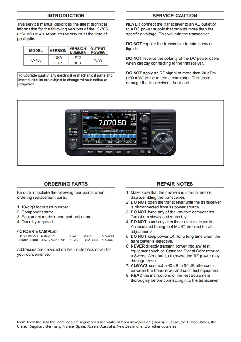 手册编号229:ICOM-IC-705_维修说明书手册_2020找手册网33天前发布关注私信0.11GB97页027手册编号229:ICOM-IC-705_维修说明书手册_2020此内容为付费资源,请付费后查看¥19¥23黄金会员免费钻石会员免费登录购买付费资源 第1页 / 共97页 第2页 / 共97页 第3页 / 共97页 第4页 / 共97页 第5页 / 共97页 试读已结束,还剩92页,您可下载完整版后进行离线阅读 THE END艾可慕 文本预览 icOMSERVICEMANUALHF/VHF/UHF ALL MODETRANSCEIVER1C-705S-15707XZ-C1October 2020Downloaded byRadioManual.EUIcom Inc. 查看更多 收起部分 喜欢就支持一下吧收藏