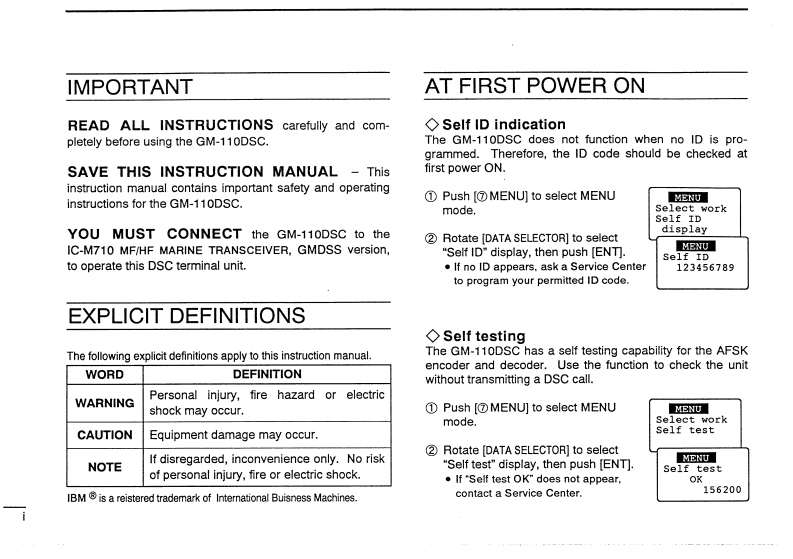 手册编号22:Icom_IC-M710GMDSS_GM-110DSC_使用说明书手册_1997找手册网33天前发布关注私信4.64MB68页037手册编号22:Icom_IC-M710GMDSS_GM-110DSC_使用说明书手册_1997此内容为付费资源,请付费后查看¥19¥23黄金会员免费钻石会员免费登录购买付费资源 第1页 / 共68页 第2页 / 共68页 第3页 / 共68页 第4页 / 共68页 第5页 / 共68页 试读已结束,还剩63页,您可下载完整版后进行离线阅读 THE END艾可慕 文本预览 ICOMINSTRUCTION MANUAL的HF DSCDSC TERMINAL UNITDISTRESSGM-110DSC回TC TUL DW-IIDCCIcom Inc. 查看更多 收起部分 喜欢就支持一下吧收藏