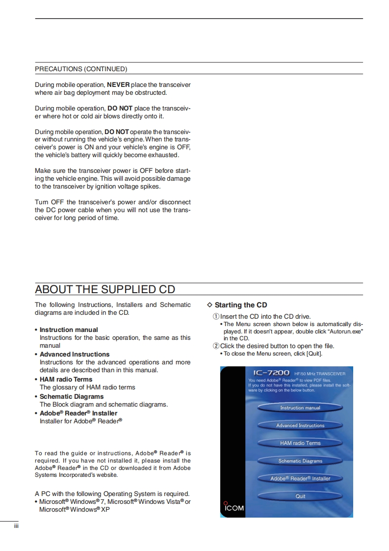 手册编号23:ICOM-IC-7200_使用说明书手册_2012找手册网33天前发布关注私信4.57MB48页040手册编号23:ICOM-IC-7200_使用说明书手册_2012此内容为付费资源,请付费后查看¥19¥23黄金会员免费钻石会员免费登录购买付费资源 第1页 / 共48页 第2页 / 共48页 第3页 / 共48页 第4页 / 共48页 第5页 / 共48页 试读已结束,还剩43页,您可下载完整版后进行离线阅读 THE END艾可慕 文本预览 ICOMINSTRUCTION MANUALHF/50 MHz TRANSCEIVER1C-720007200a@Icom Inc. 查看更多 收起部分 喜欢就支持一下吧收藏