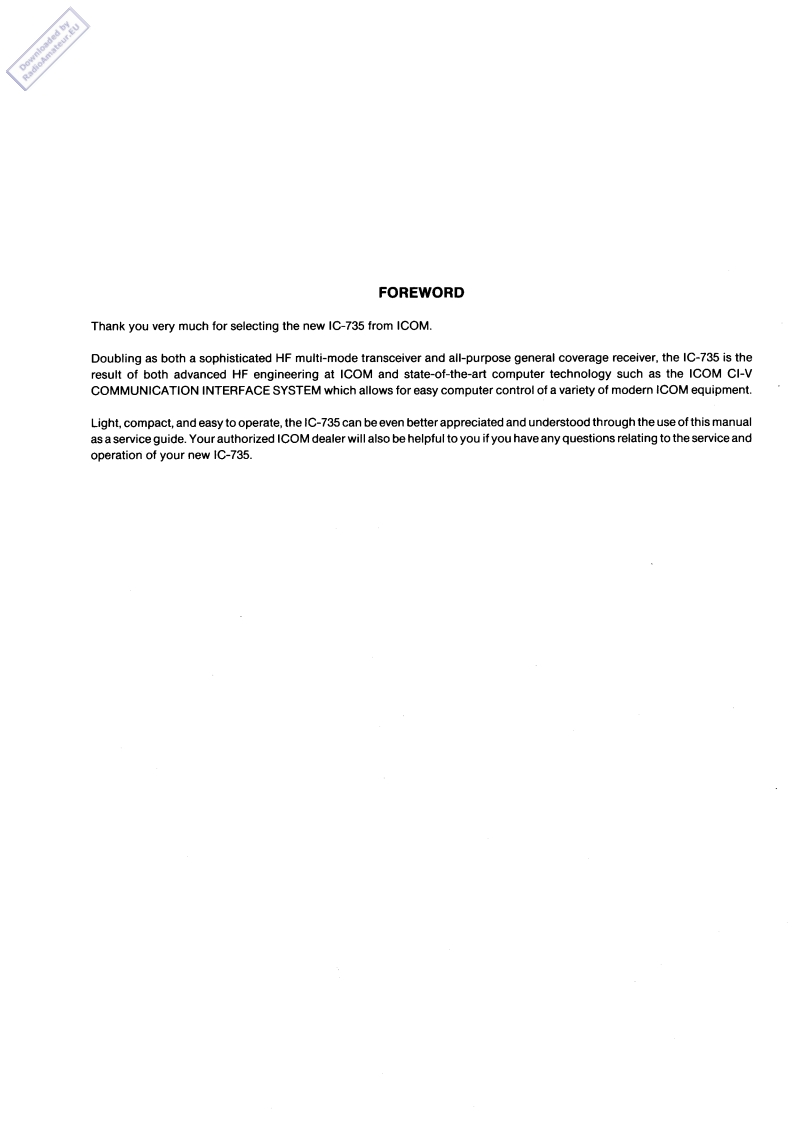 HF ALL BAND TRANSCEIVERGENERAL COVERAGE RECEIVER7SERVICE MANUALqDICOMICOM INCORPORATED1-6-19.Kamikuratsukuri,Hirano-ku,Osaka 547.JapanPh0ne:06)793-5301Telex:ICOM TR J63649ICOM AMERICA.INC.ICOM EUROPE G.M.B.H2301物2mgeN560o4P%o7e:206464g95s480089e885asse1o02842 OM AMER BVUEPhon8:0211-346047Fax211-3336992 ICOM D75234ICOM CANADA LTDhone:21462027813071-年5 oad,Unit9Telex:230-730901 ICOM AMER DALRichmondICOM AUSTRALIA,PTY.,LTD.Tele735521COMAS