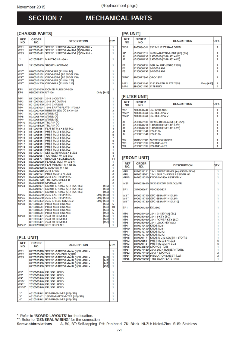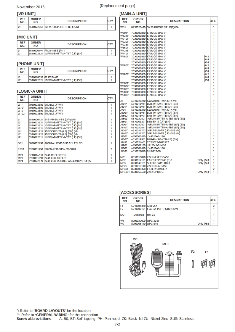 November 2015iCOMSERVICE MANUALADDENDUM1C-718NOTE:Use these amended pages as one addendum set.Do not mix them up with the previous master pages.CONTENTSREPLACEMENT PAGES...............................7-1,7-2and11-1AMENDED PAGES:PARTS LIST..·7B0 ARD LAYOUTS........................14(MAIN-A UNIT:B-7725G,PLL UNIT:B-8298A,FILTER UNIT:B-53811,MIC UNIT:B-7562A,PHONE UNIT:B-7563A,TRIMMER UNIT:B-8304)VOLTAGEDIAGRAM..................................20