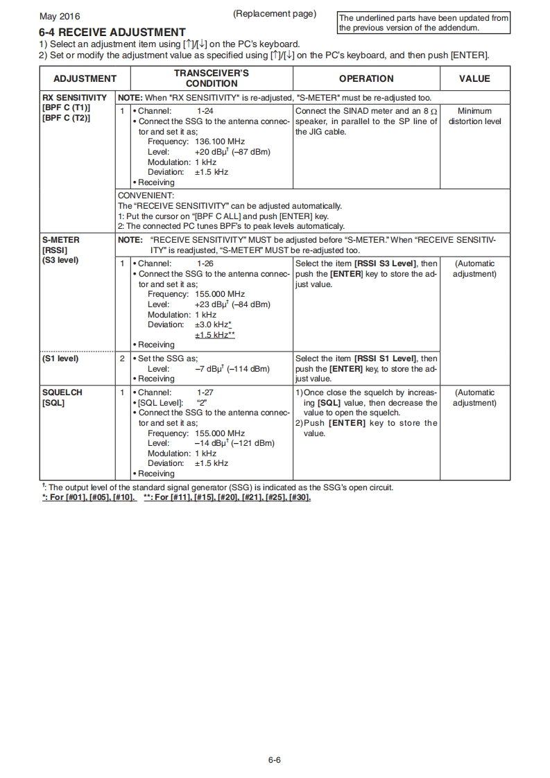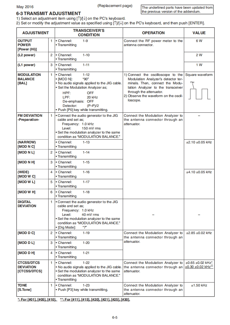 May 2016iCOMSERVICE MANUALADDENDUMIC-F9011B IC-F9011T IC-F9011SNOTE:Use these amended pages as one addendum set.Do not mix them up with the previous master pages.CONTENTSREPLACEMENT PAGES:ADJUSTMENT PROCEDURE.................6-5 and 6-6AMENDED PAGES:PARTS LIST........................BOARD LAYOUTS(MAIN-A UNIT:B-8194A).....17VOLTAGE DIAGRAM.................19[VERSION LIST可MODELVERSIONVERSIONKEY PADLCDMAINMAIN-ANUMBERUNITUNITI1C-F9011BUSA-01#011C-F9011SUSA-01#054-keyIC-F9011TUSA-01#1010-key1C-F9011BUSA-11#11w1C-F9011SUSA-11#154-key1C-F9011TUSA-11#2010-key1C-F9011BUSA-12#21*1C-F9011SUSA-12#254-keyIC-F9011TUSA-12#3010-keyNewly added versions.UNIT installed.