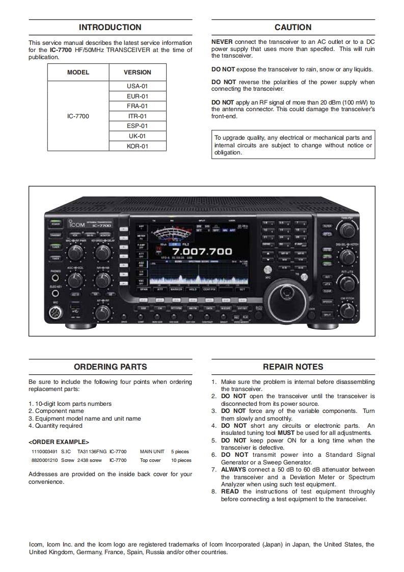 手册编号279:ICOM-IC-7700_维修说明书手册_Sept_2012找手册网33天前发布关注私信14.66MB142页037手册编号279:ICOM-IC-7700_维修说明书手册_Sept_2012此内容为付费资源,请付费后查看¥19¥23黄金会员免费钻石会员免费登录购买付费资源 第1页 / 共142页 第2页 / 共142页 第3页 / 共142页 第4页 / 共142页 第5页 / 共142页 试读已结束,还剩137页,您可下载完整版后进行离线阅读 THE END艾可慕 文本预览 GcOMSERVICEMANUALHF/50MHz TRANSCEIVERIC-7700S-14407XZ-C1-gSeptember 2012Icom Inc. 查看更多 收起部分 喜欢就支持一下吧收藏