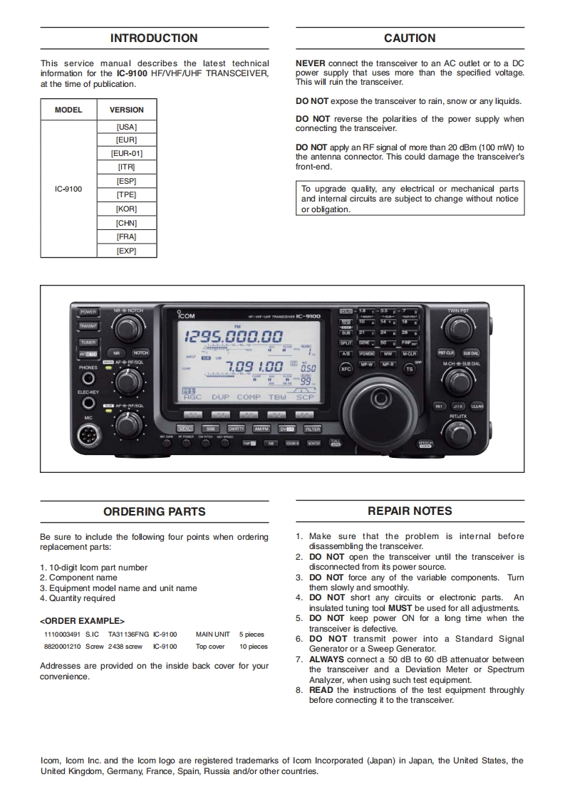 手册编号281:ICOM-IC-9100_维修说明书手册_2011找手册网33天前发布关注私信14.09MB163页026手册编号281:ICOM-IC-9100_维修说明书手册_2011此内容为付费资源,请付费后查看¥19¥23黄金会员免费钻石会员免费登录购买付费资源 第1页 / 共163页 第2页 / 共163页 第3页 / 共163页 第4页 / 共163页 第5页 / 共163页 试读已结束,还剩158页,您可下载完整版后进行离线阅读 THE END艾可慕 文本预览 COMSERVICEMANUALHFNHF/UHF TRANSCEIVERIC-9100S-14721XZ-C1Jun.2011Icom Inc. 查看更多 收起部分 喜欢就支持一下吧收藏
