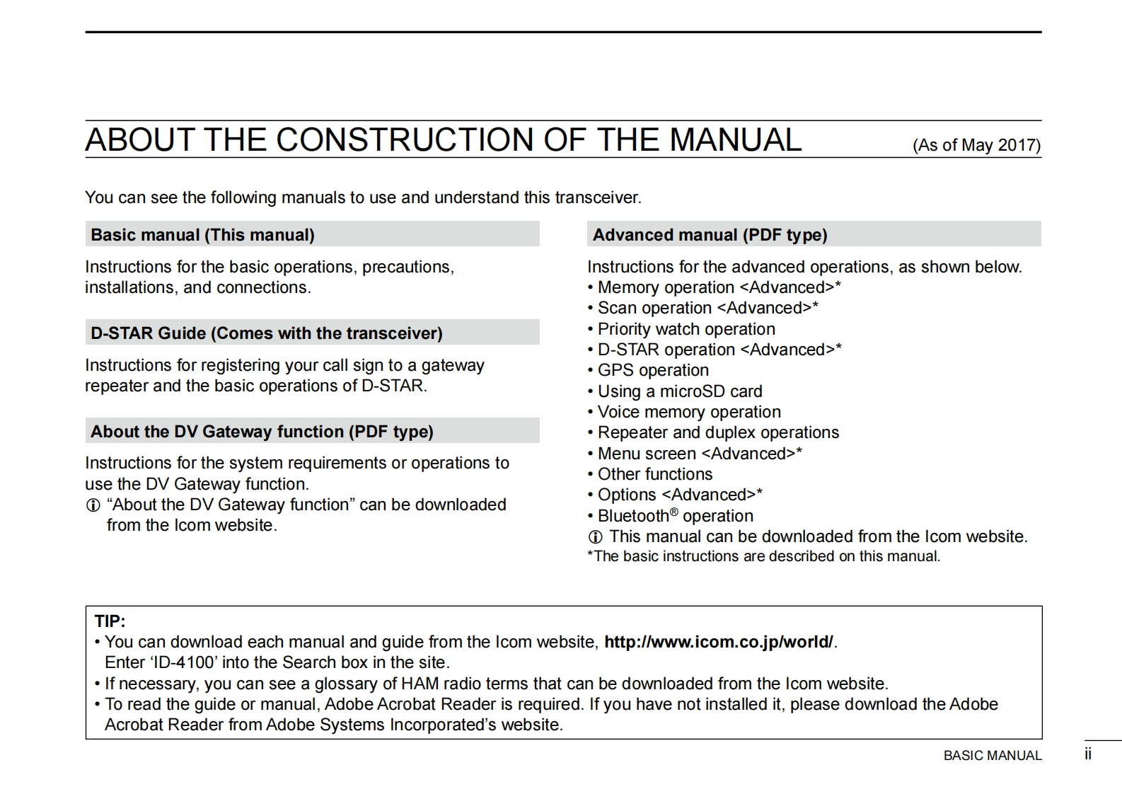 COMBASIC MANUALDUAL BAND TRANSCEIVERID-4100A回回-4100EKirkland (IA)443.575N7IHBThis device complies with Part 15 of the FCC rules.Operation issubject to the following two conditions:(1)This device may not causeharmful interference,and(2)this device must accept any interferencereceived,including interference that may cause undesired operation.WARNING:MODIFICATION OF THIS DEVICE TO RECEIVE CEL-LULAR RADIOTELEPHONE SERVICE SIGNALS IS PROHIBITEDUNDER FCC RULES AND FEDERAL LAW.Icom Inc.