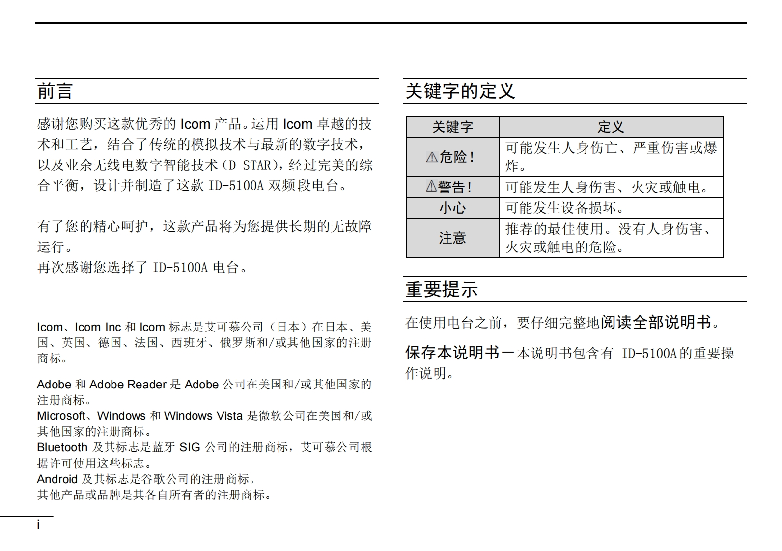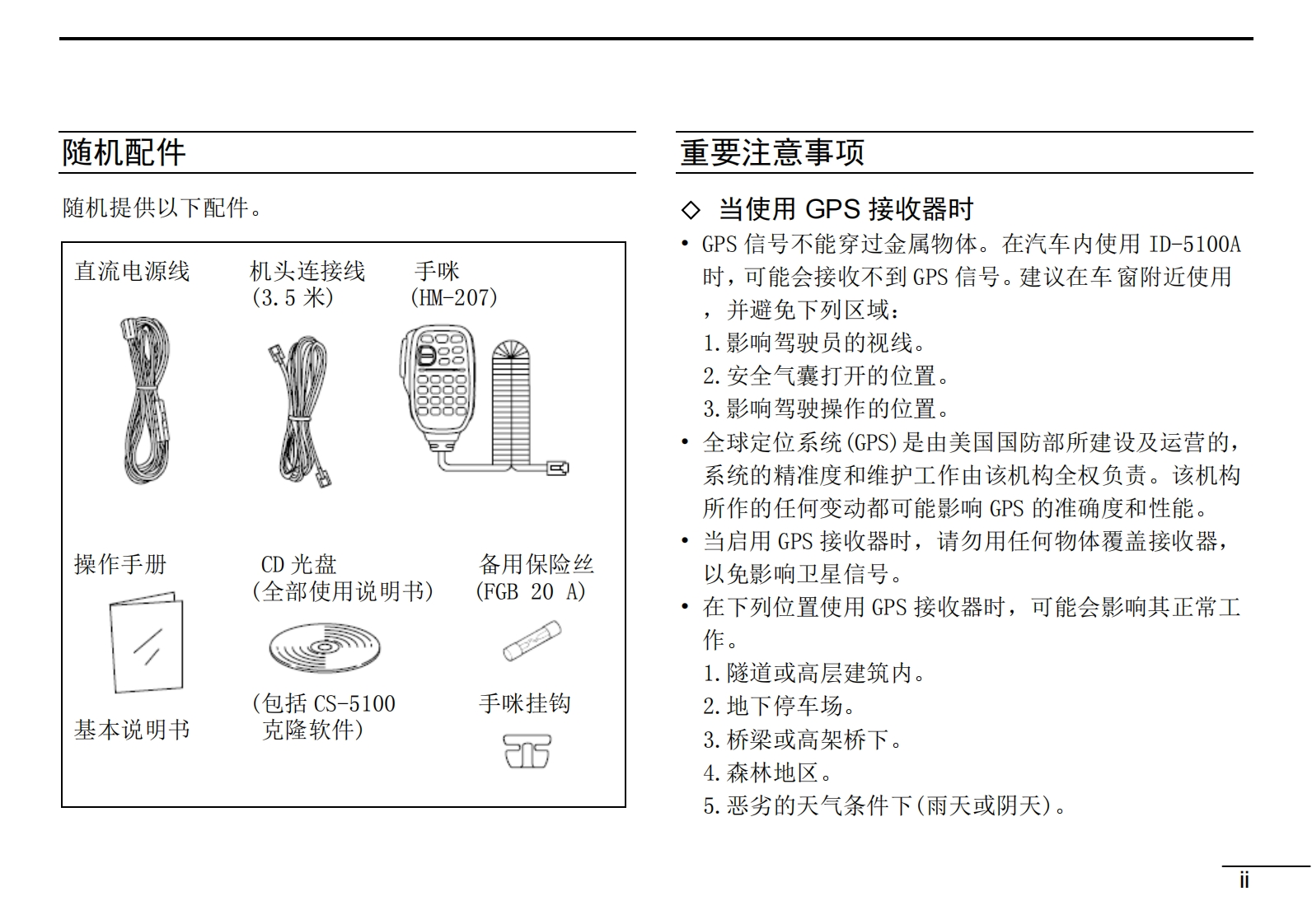 iCOM基本说明书双频段电台@色@色eeID-5100A¥@58M,11:12DV MATND风P145.500FROM Herne BayH .lUR:CQCQCQCOMDRX>CS CD CSSCANMONIMENUHOMEDRQUICK本设备符合FCC规则第15部分。操作须遵守以下两个条件:(1)本设备不得造成有害干扰,并且(2)本设备必须接受任何收到的干扰,包括可能导致意外动作的干扰。警告:根据FCC规则和联邦法律,禁止改造本设备用于接收蜂窝无线电话业务信号。