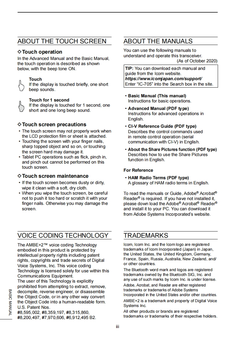 TCOMBASIC MANUALHFNHF/UHF ALL MODETRANSCEIVERIC-7057.070.509的HOLD CENT/FD属DEThis device complies with part 15 of the FCC Rules.Operation is subject to the condition that this device doesnot cause hamful interference.Icom Inc.