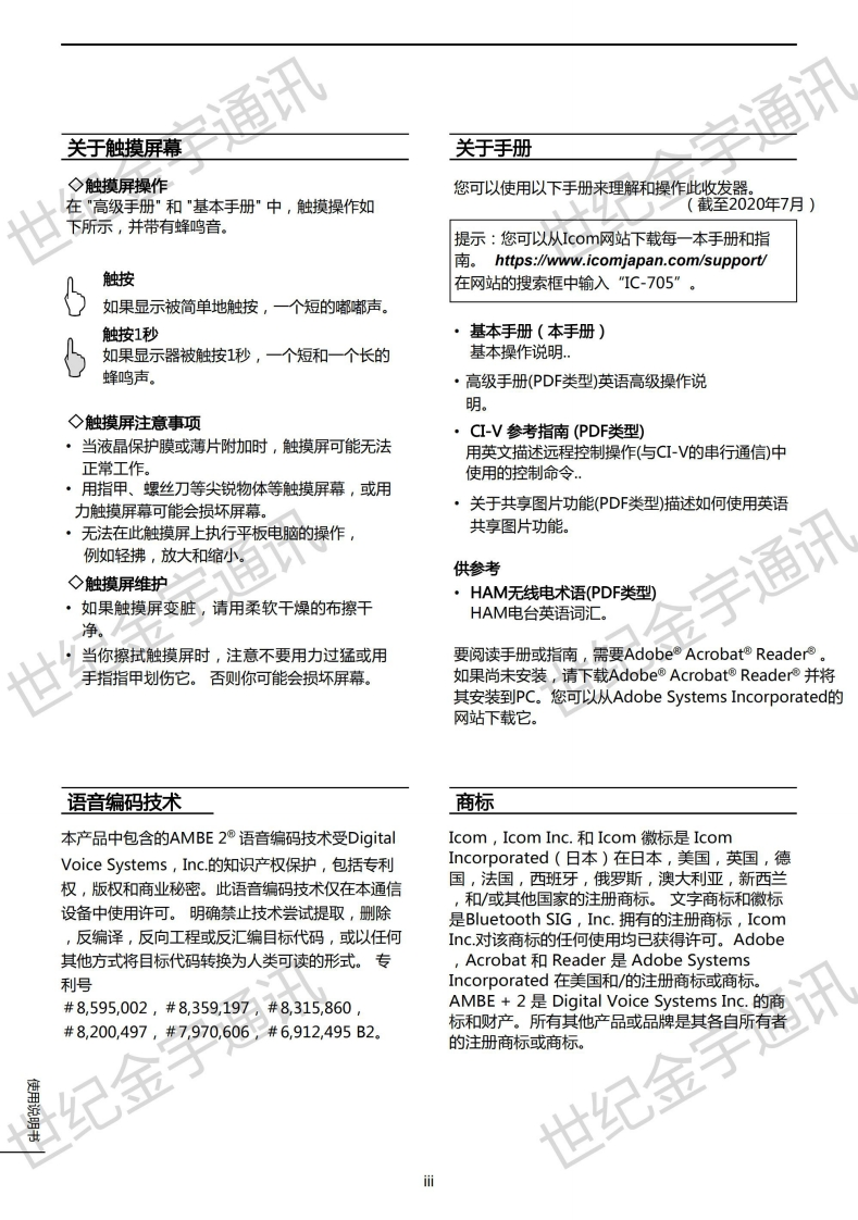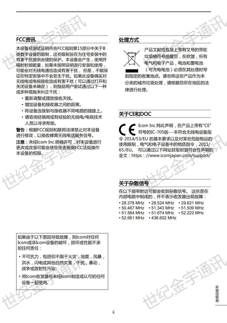 手册编号37:艾克幕ICOM-IC-705使用说明书中文手册找手册网33天前发布关注私信33.04MB80页028手册编号37:艾克幕ICOM-IC-705使用说明书中文手册此内容为付费资源,请付费后查看¥19¥23黄金会员免费钻石会员免费登录购买付费资源 第1页 / 共80页 第2页 / 共80页 第3页 / 共80页 第4页 / 共80页 第5页 / 共80页 试读已结束,还剩75页,您可下载完整版后进行离线阅读 THE END艾可慕 文本预览 iCOM世纪金宇通计使用说明书HF/VHF/UHF全模式收发器Ic-7057.070.50世纪金宇通世纪金此设备符合FCC规则的第15部分,操作须遵守本设备不会世纪金子造成有害干扰的条件。世纪金宇通计Icom Inc. 查看更多 收起部分 喜欢就支持一下吧收藏
