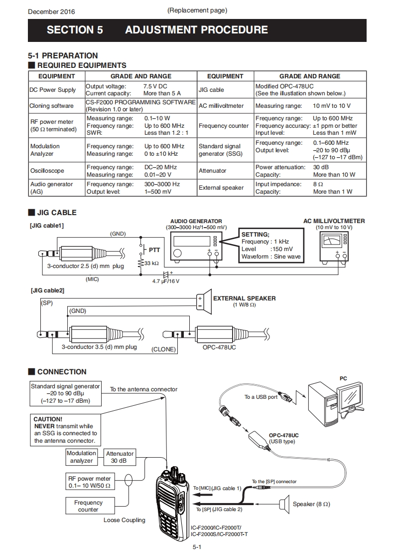 December 2016iCOMSERVICE MANUALADDENDUMIC-F20001C-F2000S1C-F2000TNOTE:Use these amended pages as one addendum set.Do not mix them up with the previous master pages.CONTENTSREPLACEMENT PAGES:ADJUSTMENT PROCEDURE..................5-1 to 5-10