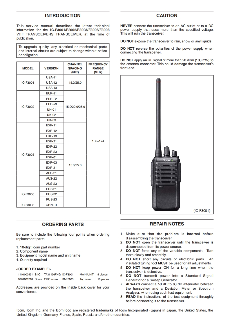 手册编号85:Icom_IC-F3001_IC-F3002_IC-F3003_IC-F3006_IC-F3008_维修说明书手册_2009找手册网33天前发布关注私信2.65MB32页043手册编号85:Icom_IC-F3001_IC-F3002_IC-F3003_IC-F3006_IC-F3008_维修说明书手册_2009此内容为付费资源,请付费后查看¥19¥23黄金会员免费钻石会员免费登录购买付费资源 第1页 / 共32页 第2页 / 共32页 第3页 / 共32页 第4页 / 共32页 第5页 / 共32页 试读已结束,还剩27页,您可下载完整版后进行离线阅读 THE END艾可慕 文本预览 COMSERVICEMANUALVHF TRANSCEIVERSIC30013F3S-14621XZ-C1Dec.2009Icom Inc. 查看更多 收起部分 喜欢就支持一下吧收藏