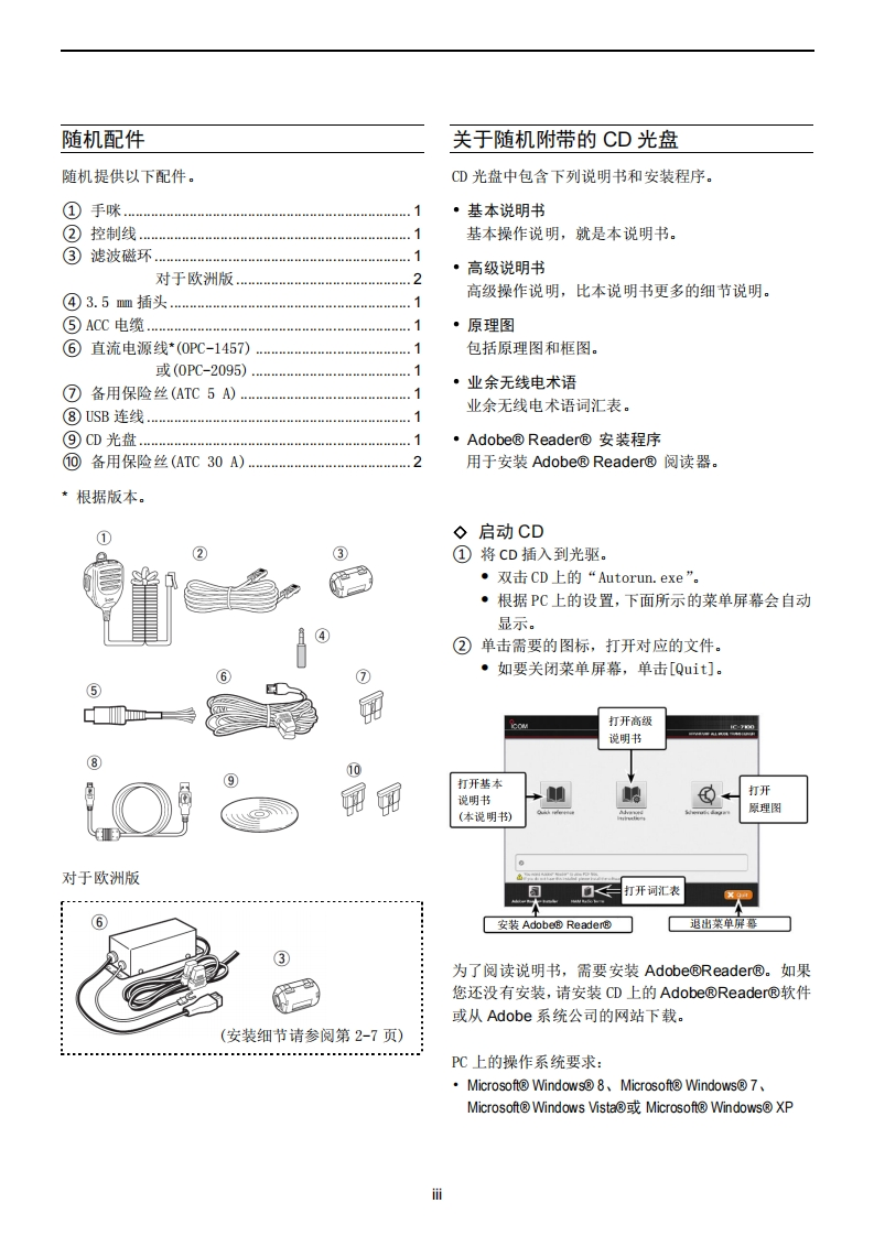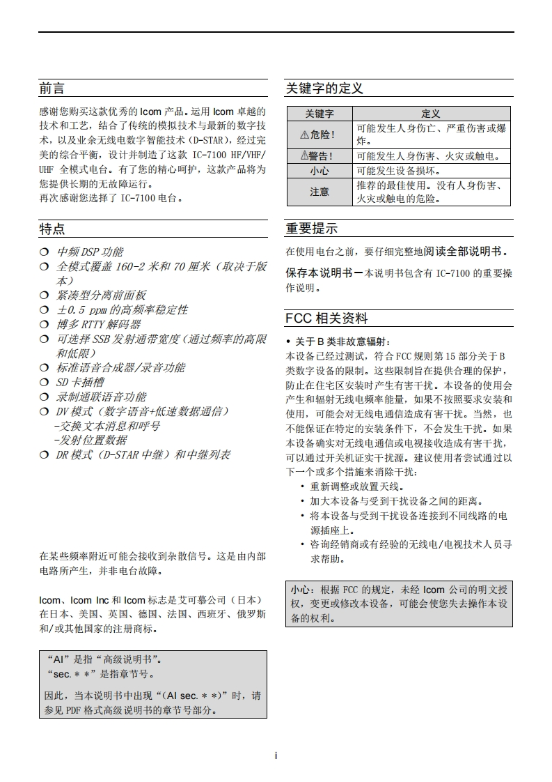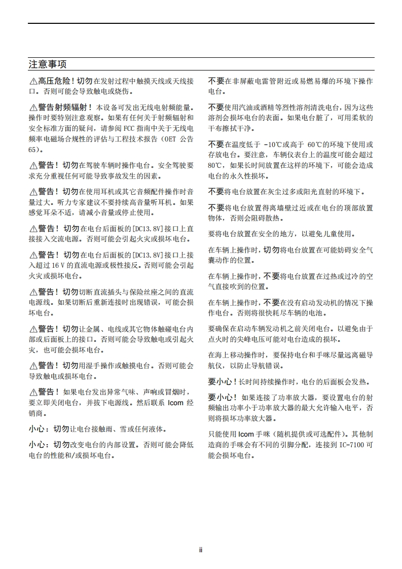 手册编号8:艾克幕ICOMIC-7100标准版中文说明书找手册网33天前发布关注私信9.58MB96页031手册编号8:艾克幕ICOMIC-7100标准版中文说明书此内容为付费资源,请付费后查看¥19¥23黄金会员免费钻石会员免费登录购买付费资源 第1页 / 共96页 第2页 / 共96页 第3页 / 共96页 第4页 / 共96页 第5页 / 共96页 试读已结束,还剩91页,您可下载完整版后进行离线阅读 THE END艾可慕 文本预览 icOM使用说明书HFNHF/UHF全模式电台1C-7100COM7.100.006本设备符合FCC规则第15部分.操作须遵守以下两个条件:(1)本设备不得造成有害干扰,并且(2)本设备必须接受任何收到的干扰,包括可能导致意外动作的干扰。警告:根据FCC规则和联邦法律,禁止改造本设备用于接收蜂窝无线电话业务信号。 查看更多 收起部分 喜欢就支持一下吧收藏