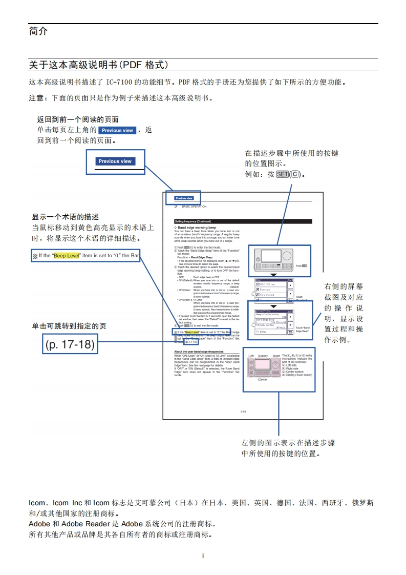 手册编号9:艾克幕ICOM-IC-7100高级版说明书手册找手册网33天前发布关注私信30.43MB379页040手册编号9:艾克幕ICOM-IC-7100高级版说明书手册此内容为付费资源,请付费后查看¥19¥23黄金会员免费钻石会员免费登录购买付费资源 第1页 / 共379页 第2页 / 共379页 第3页 / 共379页 第4页 / 共379页 第5页 / 共379页 试读已结束,还剩374页,您可下载完整版后进行离线阅读 THE END艾可慕 文本预览 icOm高级说明书简介1面板说明2安装与连接3基本操作4接收与发射HFNHF/UHF全模式电台5接收功能IC-71006发射功能7D-STAR介绍8D-STAR基本操作9D-STAR高级操作10GPS/GPS-A操作11存储信道操作12扫描操作13使用SD卡14语音存储功能15语音发射功能16天线调谐器操作17菜单模式18数据通信19维护保养20控制命令21产品规格与可选配件 查看更多 收起部分 喜欢就支持一下吧收藏