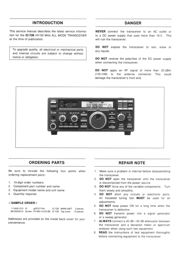 编号43:艾克幕ICOM-IC-726维修手册找手册网33天前发布关注私信9.55MB62页035编号43:艾克幕ICOM-IC-726维修手册此内容为付费资源,请付费后查看¥19¥23黄金会员免费钻石会员免费登录购买付费资源 第1页 / 共62页 第2页 / 共62页 第3页 / 共62页 第4页 / 共62页 第5页 / 共62页 试读已结束,还剩57页,您可下载完整版后进行离线阅读 THE END艾可慕 文本预览 iCOMSERVICEMANUALHF/50MHz ALL MODE TRANSCEIVER1C-726Icom Inc. 查看更多 收起部分 喜欢就支持一下吧收藏
