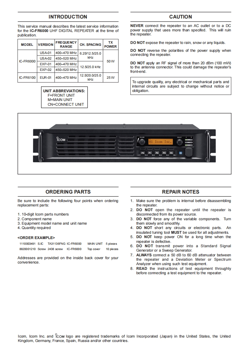 编号7:艾克幕ICOM-IC-FR600-FR6100SERVİCEMANUEL维修使用说明书图纸找手册网33天前发布关注私信8.92MB44页041编号7:艾克幕ICOM-IC-FR600-FR6100SERVİCEMANUEL维修使用说明书图纸此内容为付费资源,请付费后查看¥19¥23黄金会员免费钻石会员免费登录购买付费资源 第1页 / 共44页 第2页 / 共44页 第3页 / 共44页 第4页 / 共44页 第5页 / 共44页 试读已结束,还剩39页,您可下载完整版后进行离线阅读 THE END艾可慕 文本预览 GcOMSERVICEMANUALUHF FM REPEATERIC-FR6000I亡-FR61oOS-14419XZ-C1Feb.2008Icom Inc. 查看更多 收起部分 喜欢就支持一下吧收藏