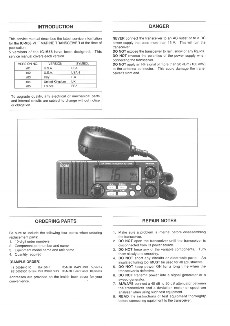 艾克幕icom-ic-m58-维修图纸手册找手册网33天前发布关注私信19.15MB41页041艾克幕icom-ic-m58-维修图纸手册此内容为付费资源,请付费后查看¥19¥23黄金会员免费钻石会员免费登录购买付费资源 第1页 / 共41页 第2页 / 共41页 第3页 / 共41页 第4页 / 共41页 第5页 / 共41页 试读已结束,还剩36页,您可下载完整版后进行离线阅读 THE END艾可慕 文本预览 iCOMSERVICEMANUALVHF MARINE TRANSCEIVERIC-M58Icom Inc. 查看更多 收起部分 喜欢就支持一下吧收藏