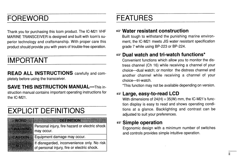 艾克幕icom-icm21-使用说明书手册找手册网33天前发布关注私信3.17MB32页044艾克幕icom-icm21-使用说明书手册此内容为付费资源,请付费后查看¥19¥23黄金会员免费钻石会员免费登录购买付费资源 第1页 / 共32页 第2页 / 共32页 第3页 / 共32页 第4页 / 共32页 第5页 / 共32页 试读已结束,还剩27页,您可下载完整版后进行离线阅读 THE END艾可慕 文本预览 ICOMNSRC©N MANUALVHF MARINE TRANSCEIVERIC-M21级典国西四四测Icom Inc. 查看更多 收起部分 喜欢就支持一下吧收藏