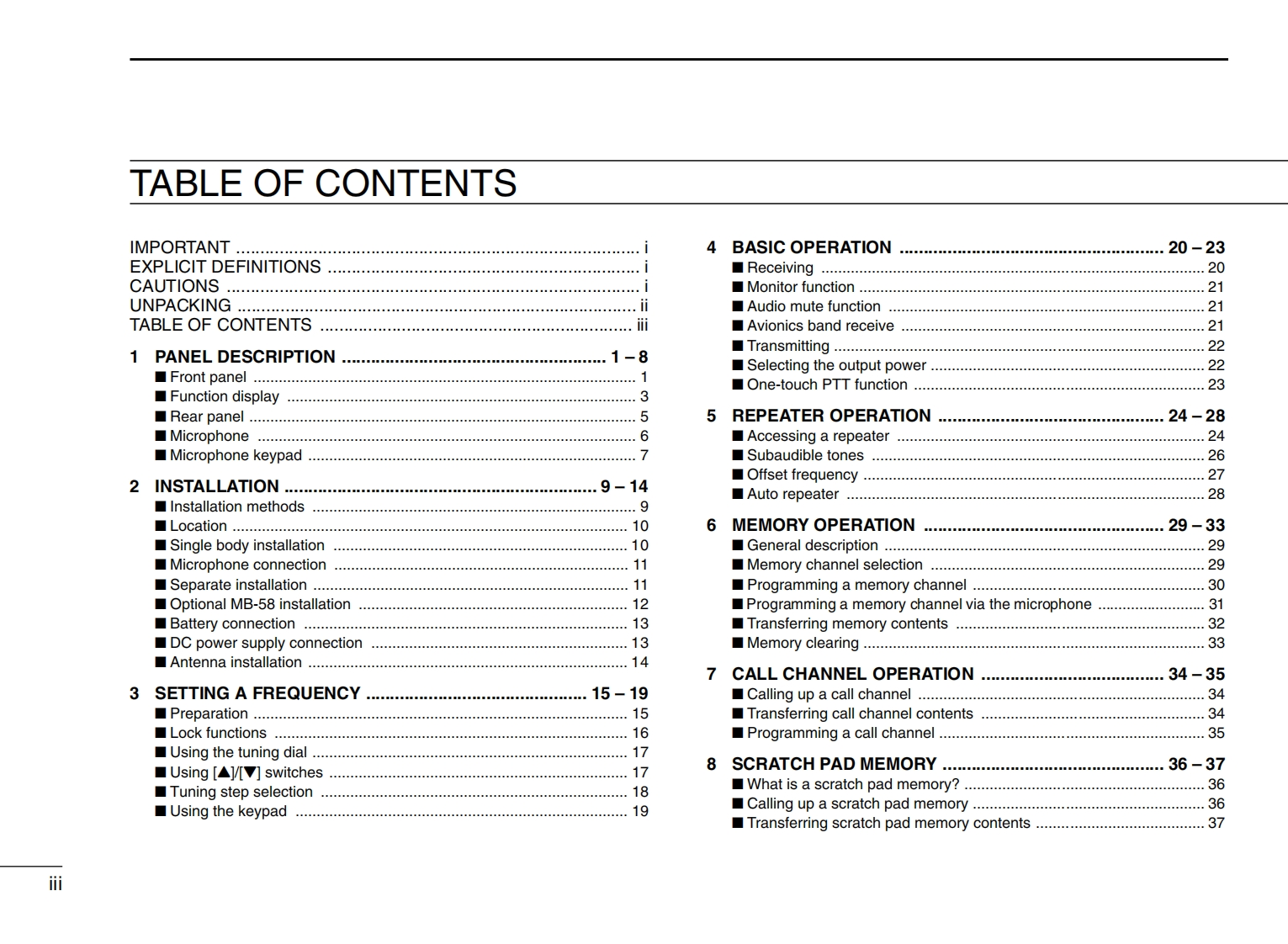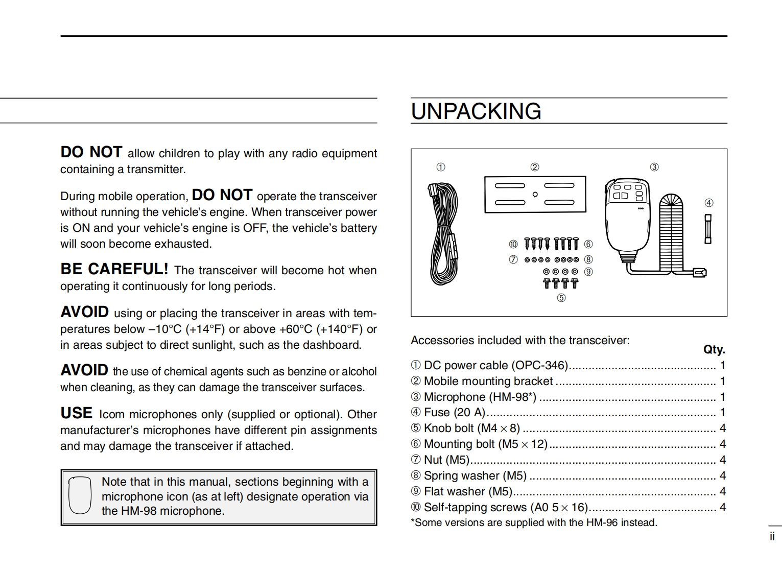 ●COMINSTRUCTION MANUALVHF/UHF FM TRANSCEIVERC-207HThis device complies with Part 15 of the FCC rules.Operation is sub-ject to the following two conditions:(1)This device may not causeharmful interference,and(2)this device must accept any interferencereceived,including interference that may cause undesired operation.Icom Inc.