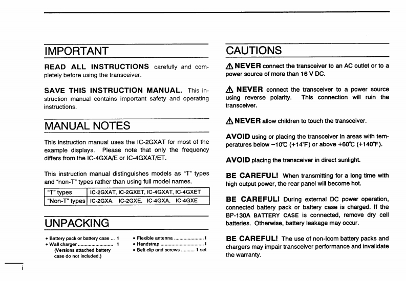 ICOMINSTRUCTION MANUAL144 MHz FM TRANSCEIVERIC-2GXAIC-2GXEIC-2GXATIC-2GXETUHF FM TRANSCEIVERIC-4GXA IC-4GXEo5可IC-4GXAT IC-4GXETThis device comples with Part 15 of the FCC Rules.Operation issubpect to the following two conditions:(1)This device may not causemharmfu interlerence.and (2)this device must accept any interferencereceived,including interterence that may cause undesired operation.Icom Inc.