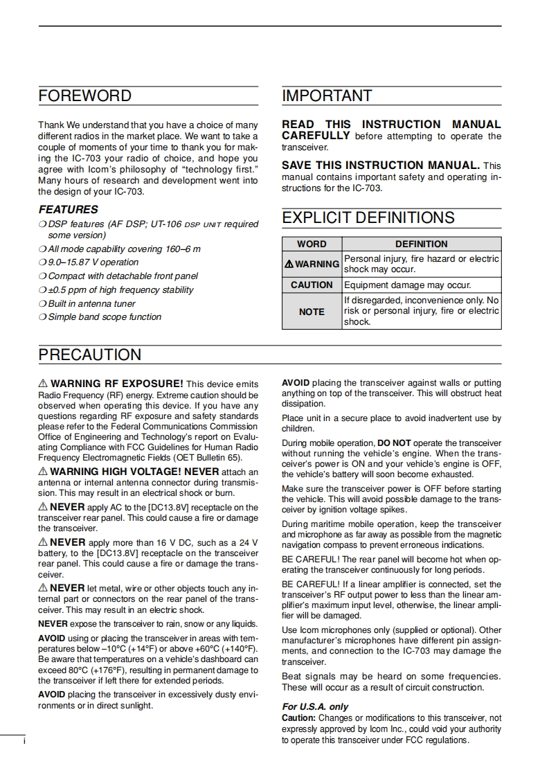 艾可慕Icom_IC-703(Manual操作说明书手册)找手册网33天前发布关注私信7.88MB112页040艾可慕Icom_IC-703(Manual操作说明书手册)此内容为付费资源,请付费后查看¥19¥23黄金会员免费钻石会员免费登录购买付费资源 第1页 / 共112页 第2页 / 共112页 第3页 / 共112页 第4页 / 共112页 第5页 / 共112页 试读已结束,还剩107页,您可下载完整版后进行离线阅读 THE END艾可慕 文本预览 TCOMINSTRUCTION MANUALHF/50 MHzALL MODE TRANSCEIVER1C-703COMDSP0e5.0aLCH8-S4TT州1Icom Inc. 查看更多 收起部分 喜欢就支持一下吧收藏