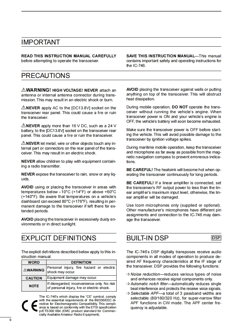 comINSTRUCTION MANUALVHF/HF ALL MODE TRANSCEIVER1C-746This device comples with Part 15 ofthe FCC rules.Operation is sub-ject to the following two condtions:(1)This device may not causehamful nsererene对Icom Inc.