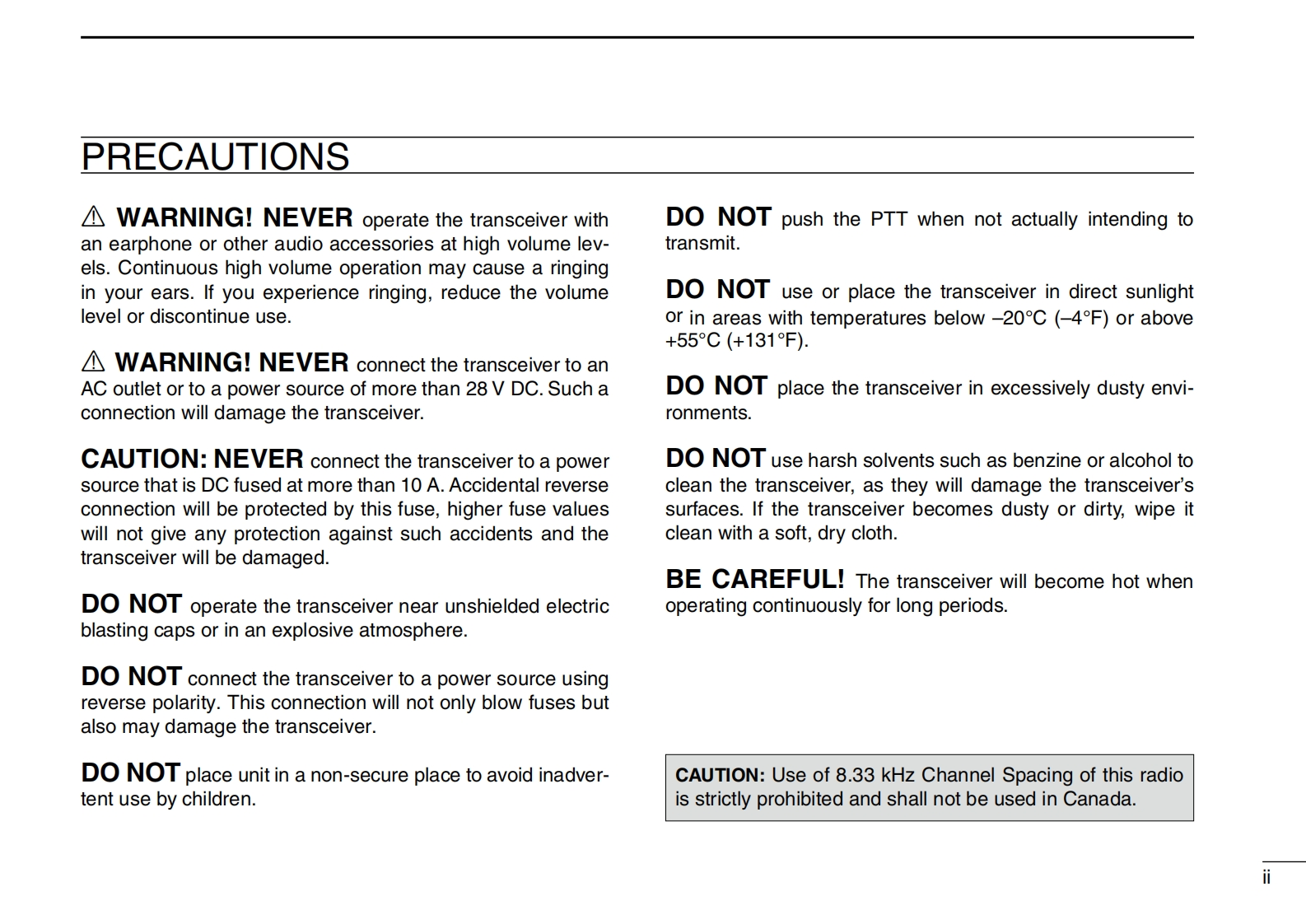 INSTRUCTION MANUALVHF AIR BAND TRANSCEIVERSIC-A2OEDUAL ECCOMRCLCOMMVOLR&118.00136.975MEMOFF1C-A220This device complies with Part 15 of the FCCRules.Operation is subject to the condition thatthis device does not cause harmful interference.Icom Inc.