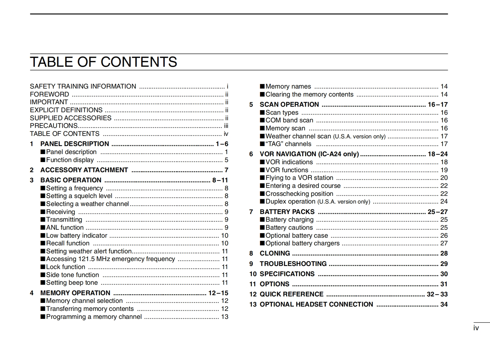 COMINSTRUCTION MANUALVHF AIR BAND TRANSCEIVERIEA居4COMIC-824IC-A6M99This device complies with Part 15 of the FCCRules.Operation is subject to the conditionthat this device does not cause harmful inter-ferenceIcom Inc.IC-A24IC-A6