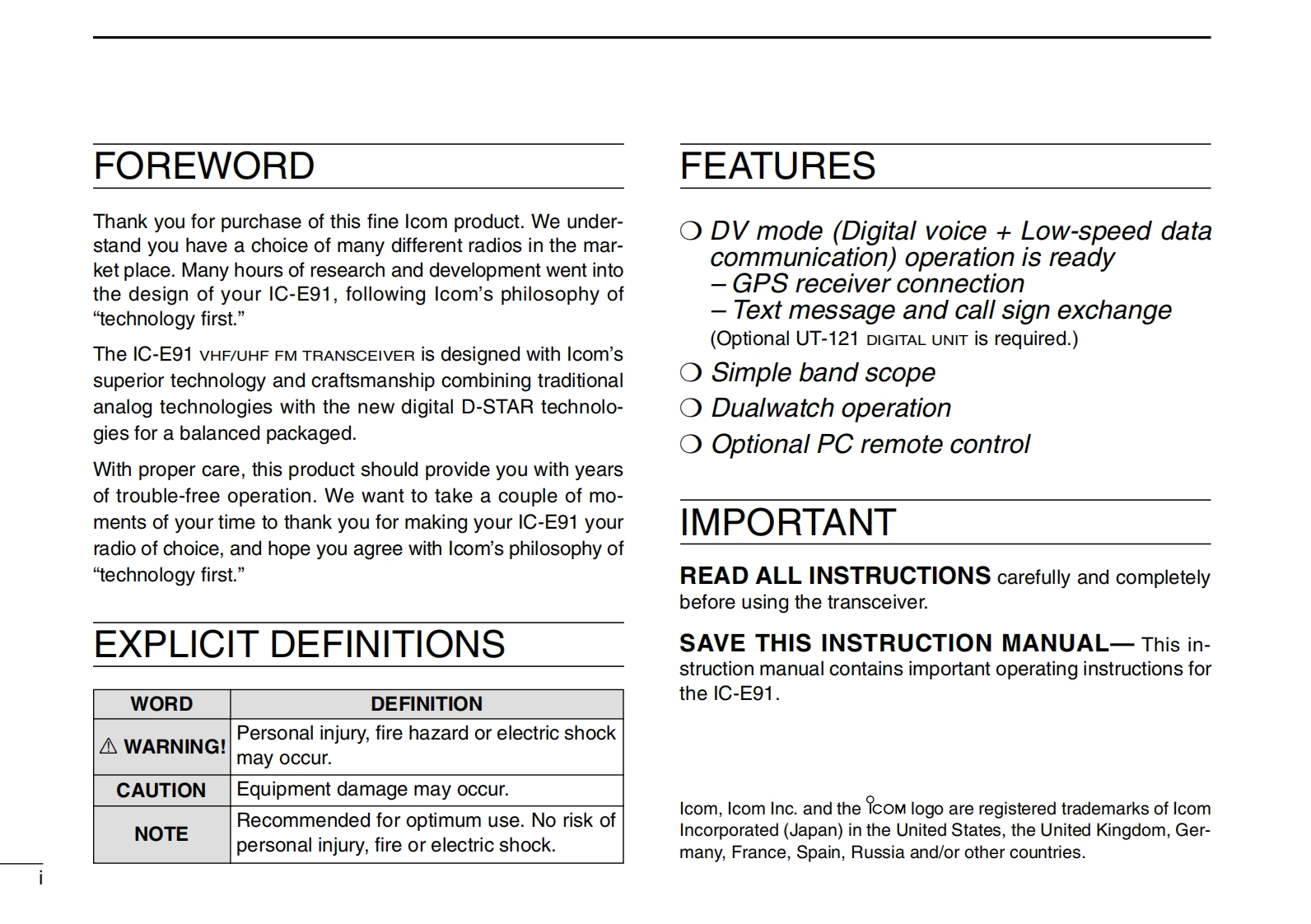 艾可慕Icom_IC-E91(Manual操作说明书手册)找手册网33天前发布关注私信1.63MB132页020艾可慕Icom_IC-E91(Manual操作说明书手册)此内容为付费资源,请付费后查看¥19¥23黄金会员免费钻石会员免费登录购买付费资源 第1页 / 共132页 第2页 / 共132页 第3页 / 共132页 第4页 / 共132页 第5页 / 共132页 试读已结束,还剩127页,您可下载完整版后进行离线阅读 THE END艾可慕 文本预览 cOmINSTRUCTION MANUALVHF/UHF FM TRANSCEIVERIC-E91ICOM1C-E91145500.m793433.550m932©》DUAL BAND思因因思巴图巴四题Icom Inc.四因厨四 查看更多 收起部分 喜欢就支持一下吧收藏