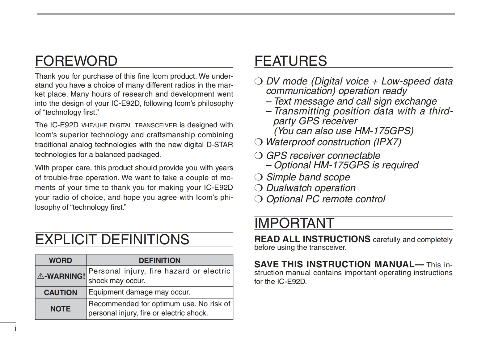 艾可慕Icom_IC-E92D(Manual操作说明书手册)找手册网33天前发布关注私信15.38MB156页023艾可慕Icom_IC-E92D(Manual操作说明书手册)此内容为付费资源,请付费后查看¥19¥23黄金会员免费钻石会员免费登录购买付费资源 第1页 / 共156页 第2页 / 共156页 第3页 / 共156页 第4页 / 共156页 第5页 / 共156页 试读已结束,还剩151页,您可下载完整版后进行离线阅读 THE END艾可慕 文本预览 COMINSTRUCTION MANUALVHF/UHF DIGITAL TRANSCEIVERIC-E92DICOM145500.-72433.500.am993WATERPROOF IC-E920D-STARIcom Inc. 查看更多 收起部分 喜欢就支持一下吧收藏