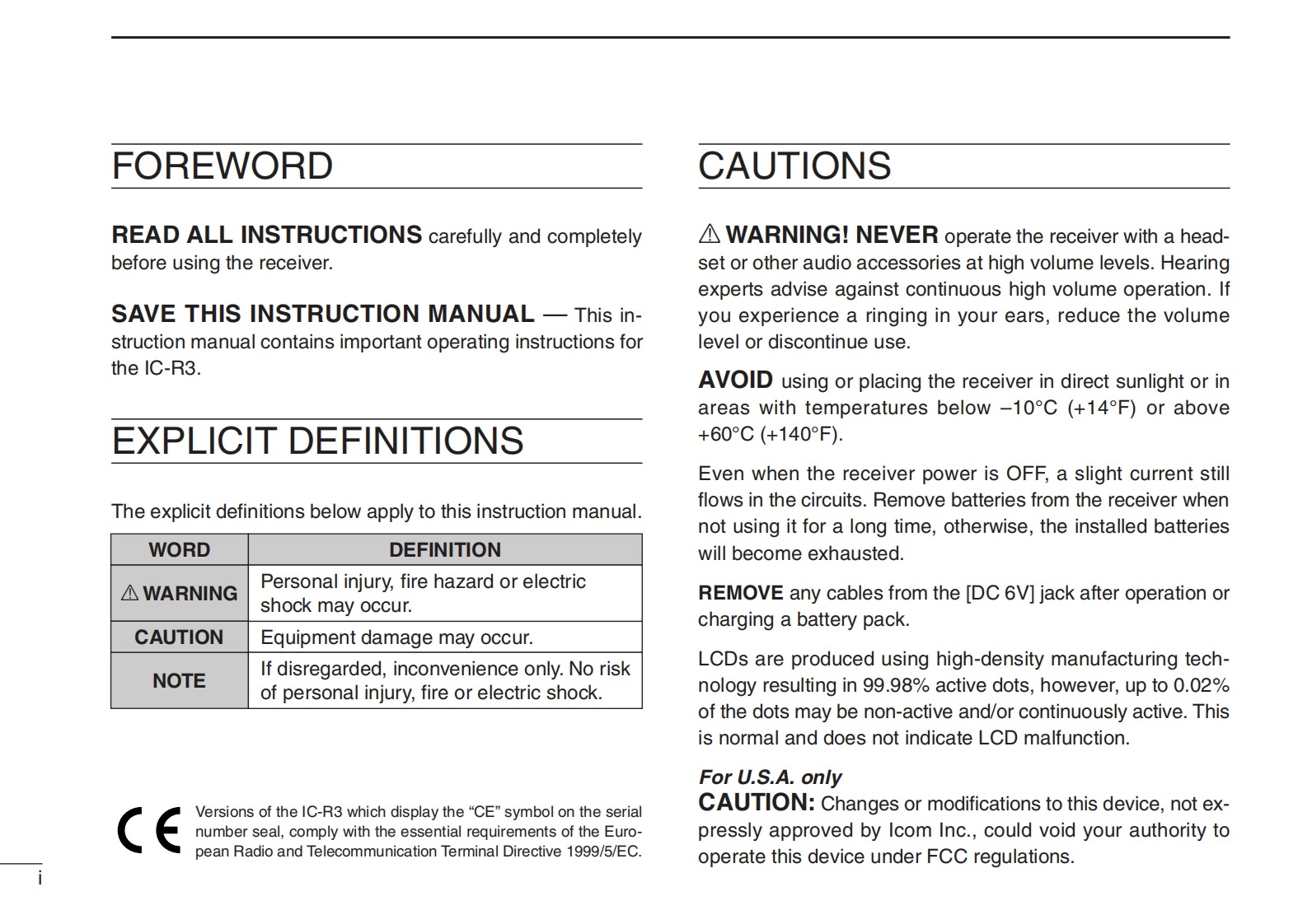 icOMINSTRUCTION MANUALCOMMUNICATIONS RECEIVERIC-R3M:H492450.095.00dIC-R3TS5.0This device complies with Part 15 of the FCC rules.Operation is sub-ject to the following two conditions:(1)This device may not causeharmful interference,and (2)this device must accept any interferencereceived,including interference that may cause undesired operation.Icom Inc.