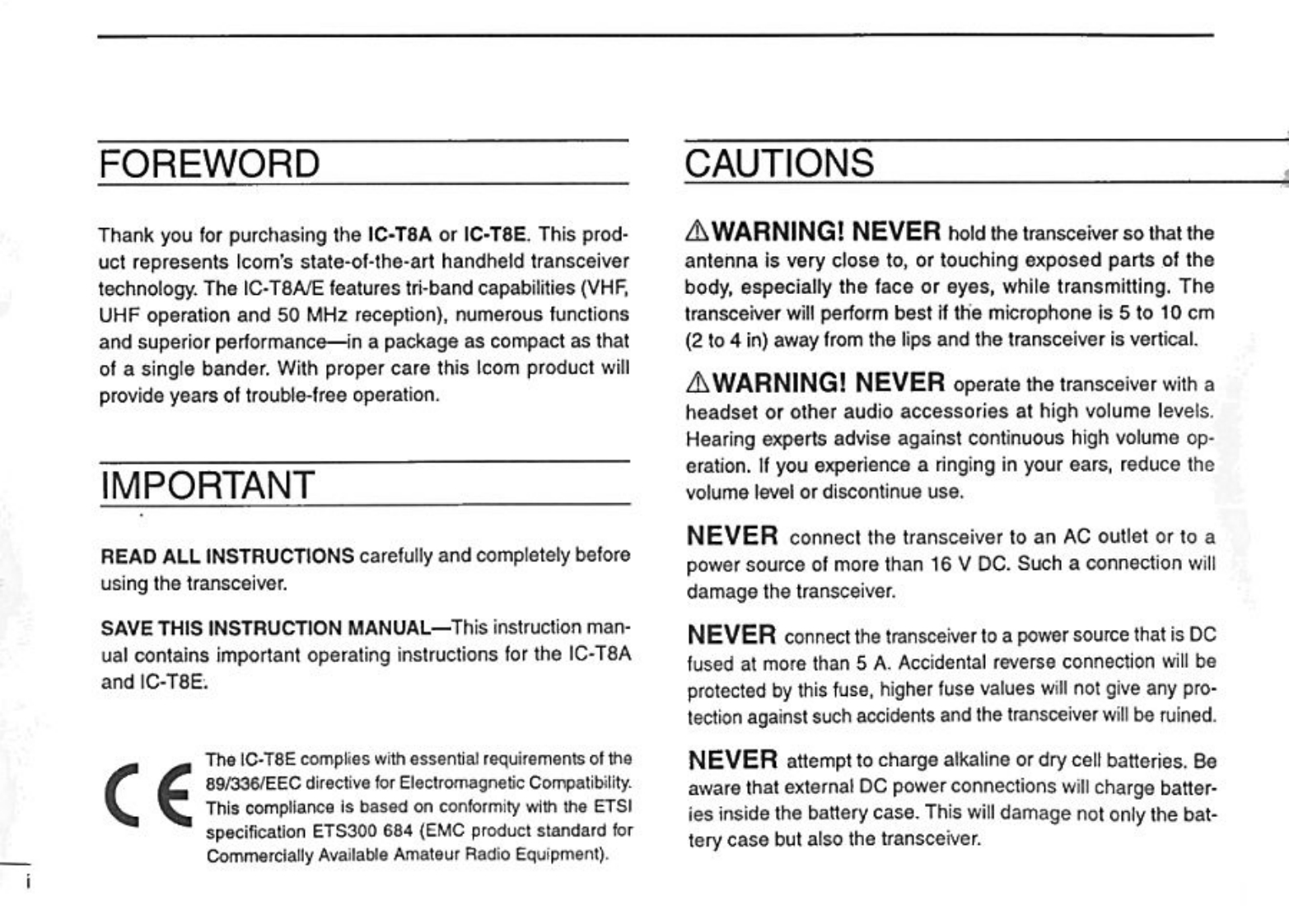 iCOMINSTRUCTION MANUALFM TRANSCEIVERS1E-T83500B壶This device complies with Part 15 of the FCC rutes.Opemtion is sub-ject to the following two conditions:(1)This device may not causeharmful interforonce,and (2)this dovice must accept any intorterenceroceived,including intertoronco that may cause undosired operation.2…网cD ooomIcom Inc.