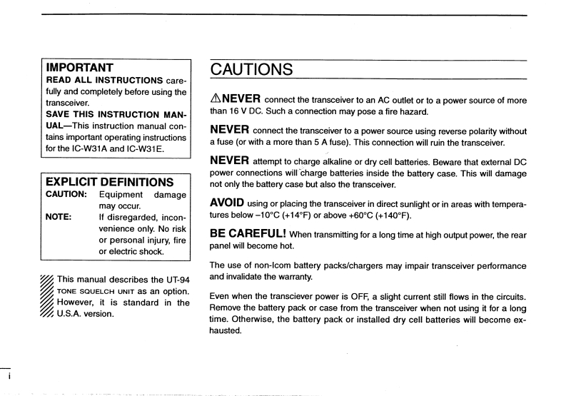 COMINSTRUCTION MANUALDUAL BAND FM TRANSCEIVERIE W3This device complies with Part 15 of the FCC rules.Operation is subject to the following two conditions:(1)This device may not causeharmful interference,and (2)this device must accept any interferencereceived,including interfnrence that may cause undesired cperation.oooooB 16:01010-9959O5S50300000:0Icom Inc.